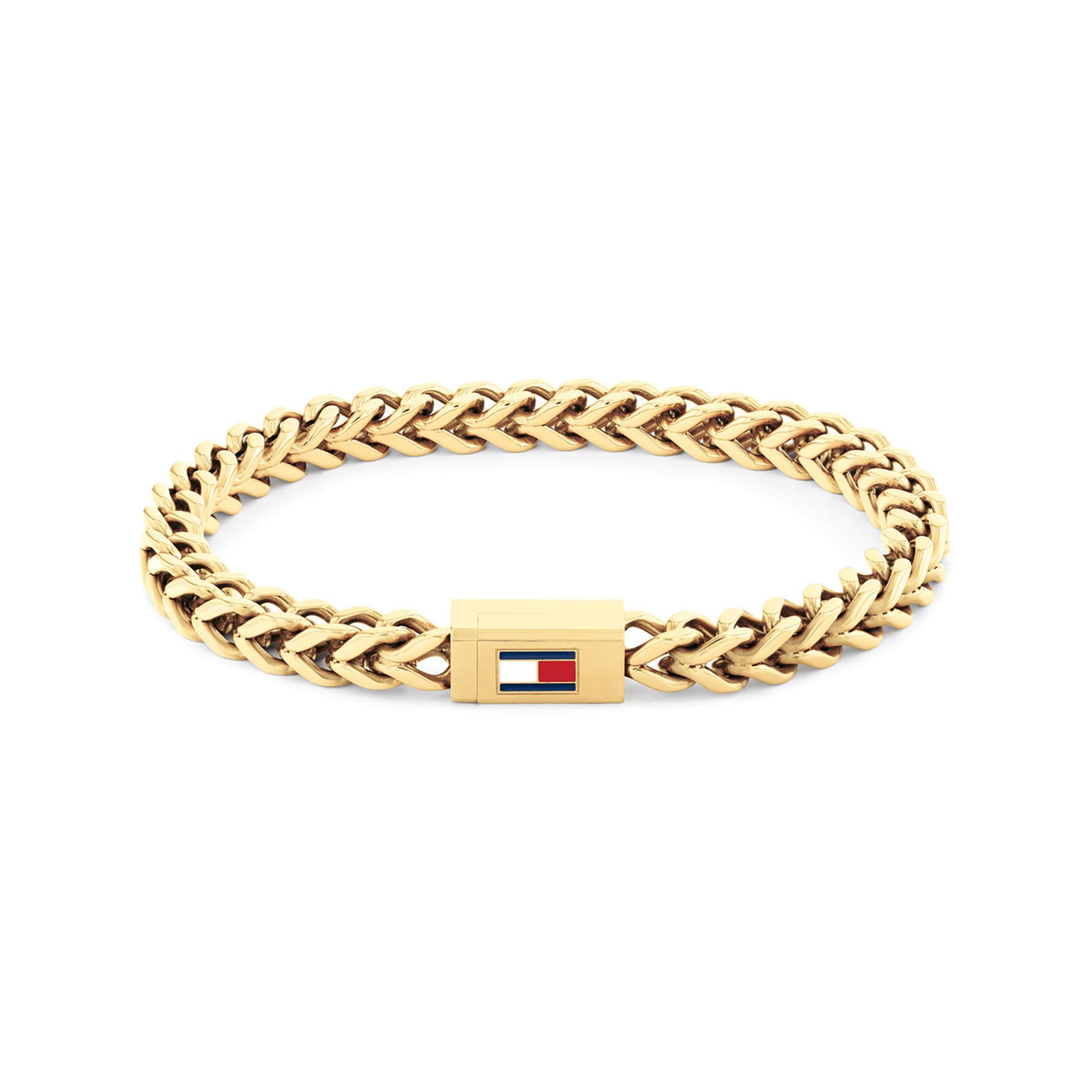 "Le bracelet pour homme de Tommy Hilfiger combine un style intemporel avec un confort moderne. La chaîne Franco polie de 6 mm et le fermoir magnétique avec un logo de drapeau émaillé confèrent de l’élégance à chaque look