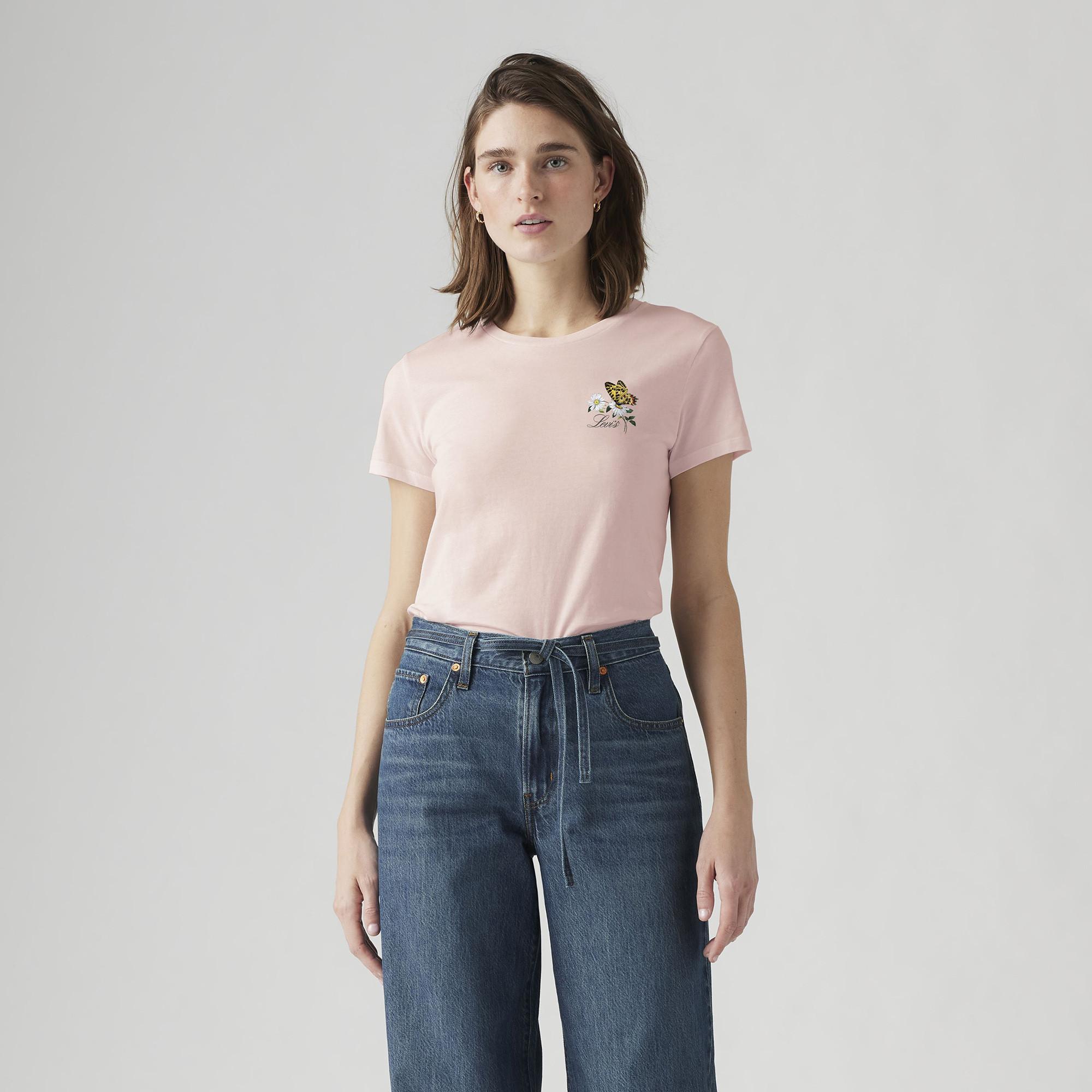 Ce T-shirt présente un col rond classique et des manches courtes, ce qui en fait un ajout polyvalent à toute garde-robe. Le design est rehaussé d'un charmant imprimé graphique d'un papillon et de fleurs sur la poitrine, ajoutant une touche d'élégance inspirée de la nature.