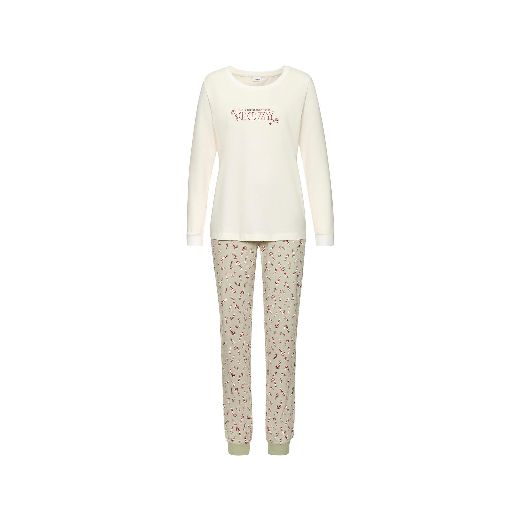 Ce pyjama long apporte une touche festive à la tenue de nuit grâce à son imprimé frontal charmant et son motif intégral. Le haut à manches longues avec col rond et le pantalon à taille élastique offrent une coupe confortable. La qualité en pur coton assure une sensation agréable, idéale pour les soirées d'hiver détendues.