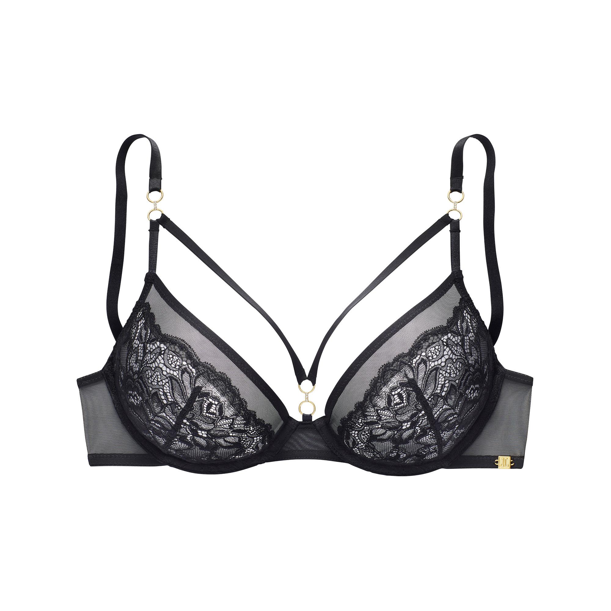 Ce soutien-gorge à armatures séduit par sa dentelle jacquard délicate et ses détails audacieux avec anneaux et brides. Les bretelles réglables et la fermeture au dos assurent un ajustement parfait et un confort optimal. Avec son dos en tulle transparent et son design raffiné, il est idéal pour des moments uniques.