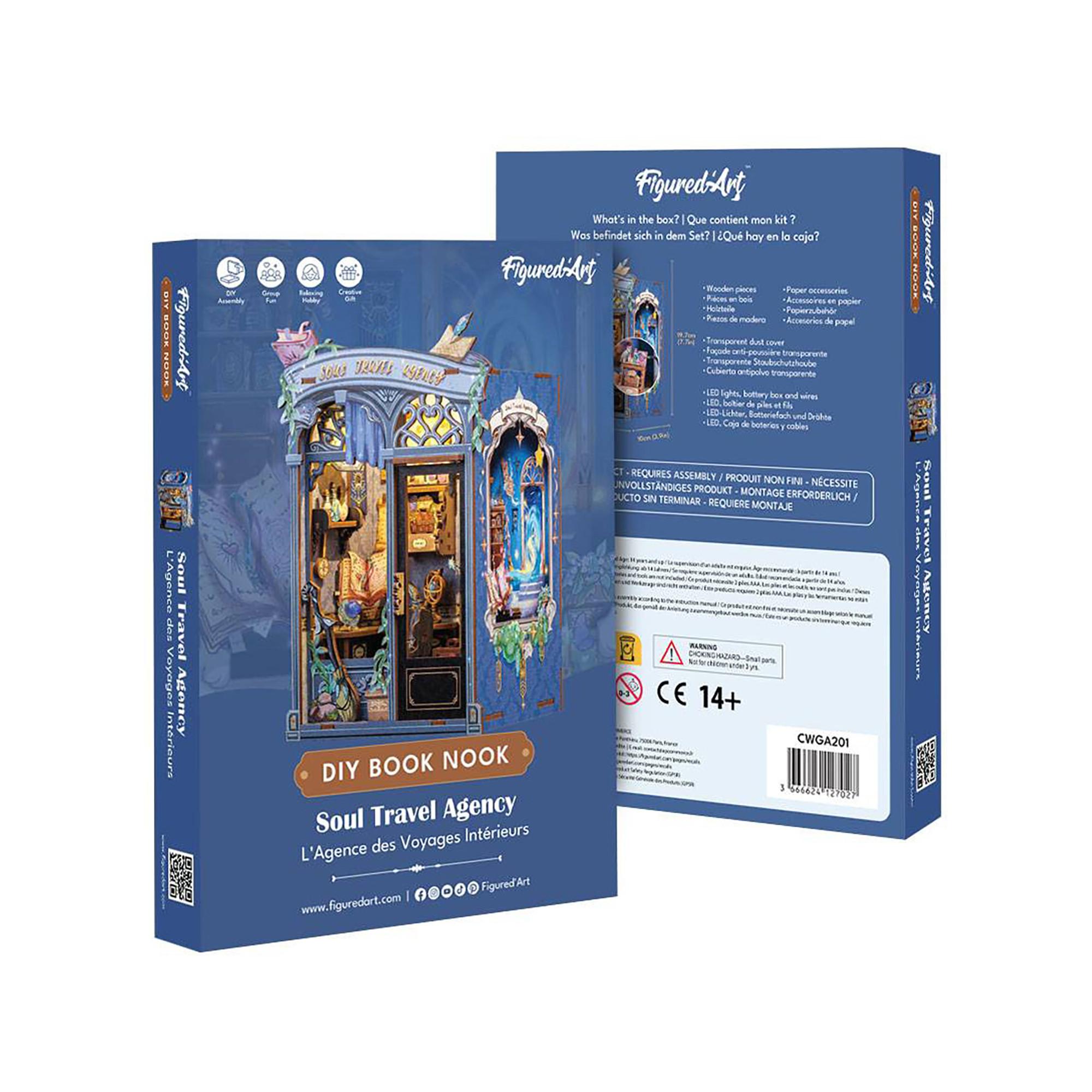 Le serre-livres « Voyage de l’âme » invite à une petite pause loin de la vie quotidienne trépidante et crée un lieu de retraite personnel directement dans la bibliothèque. Ce kit de bricolage transforme une simple étagère en un monde miniature coloré et ludique qui agit comme une petite agence de voyages pour l’âme. Avec des pièces en bois préfabriquées, un éclairage LED, un boîtier de batterie, des accessoires miniatures et des décorations en papier détaillées, un diorama agréable est créé en peu de temps, alliant le calme, l’inspiration et l’imagination. L’ensemble est idéal pour tous ceux qui aiment les projets créatifs et recherchent un objet décoratif qui favorise la détente et le bien-être. Le Book Nook fini devient un accroche-regard particulier qui ajoute à votre paysage de livres un lieu charmant et personnel de paix intérieure.