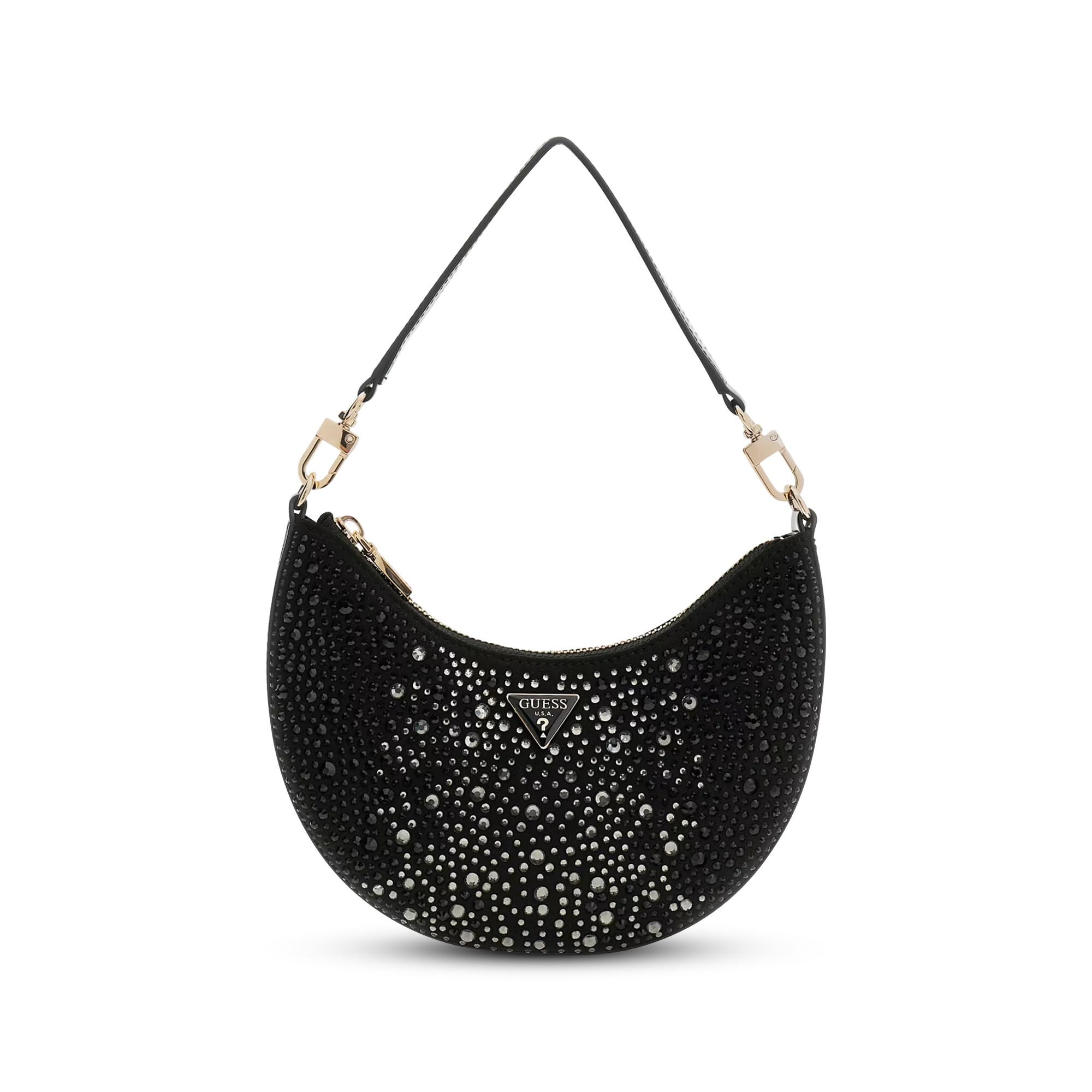 Cet élégant sac à bandoulière présente une forme de croissant de lune, orné de strass étincelants qui créent un effet éblouissant. Le sac est équipé d'une fermeture éclair sécurisée et d'une bandoulière confortable, ce qui en fait un accessoire élégant pour diverses occasions.