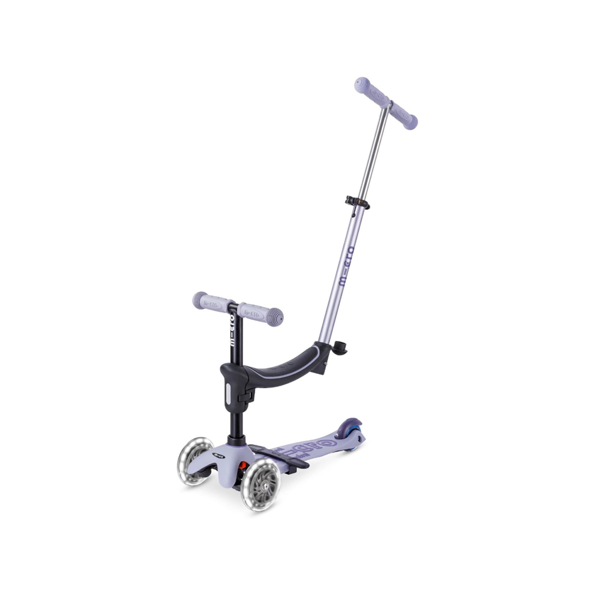 - Trottinette 3 en 1 avec siège, repose-pieds et barre de poussée