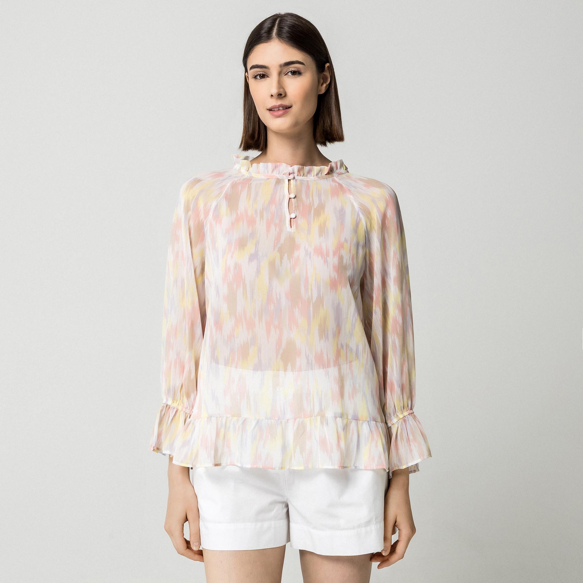 Ce chemisier est confectionné en 100% viscose, offrant un tombé confortable et fluide. C'est une pièce polyvalente qui peut être stylisée pour diverses occasions.
