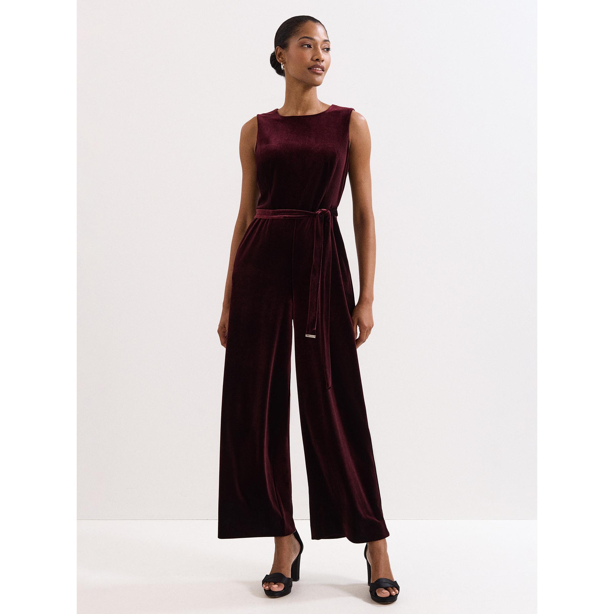La combinaison « Marta » de Phase Eight séduit par sa silhouette culotte élégante et son dos ouvert moderne. La ceinture nouée souligne la taille et offre une coupe flatteuse. Un style glamour en velours, parfait pour les occasions spéciales.