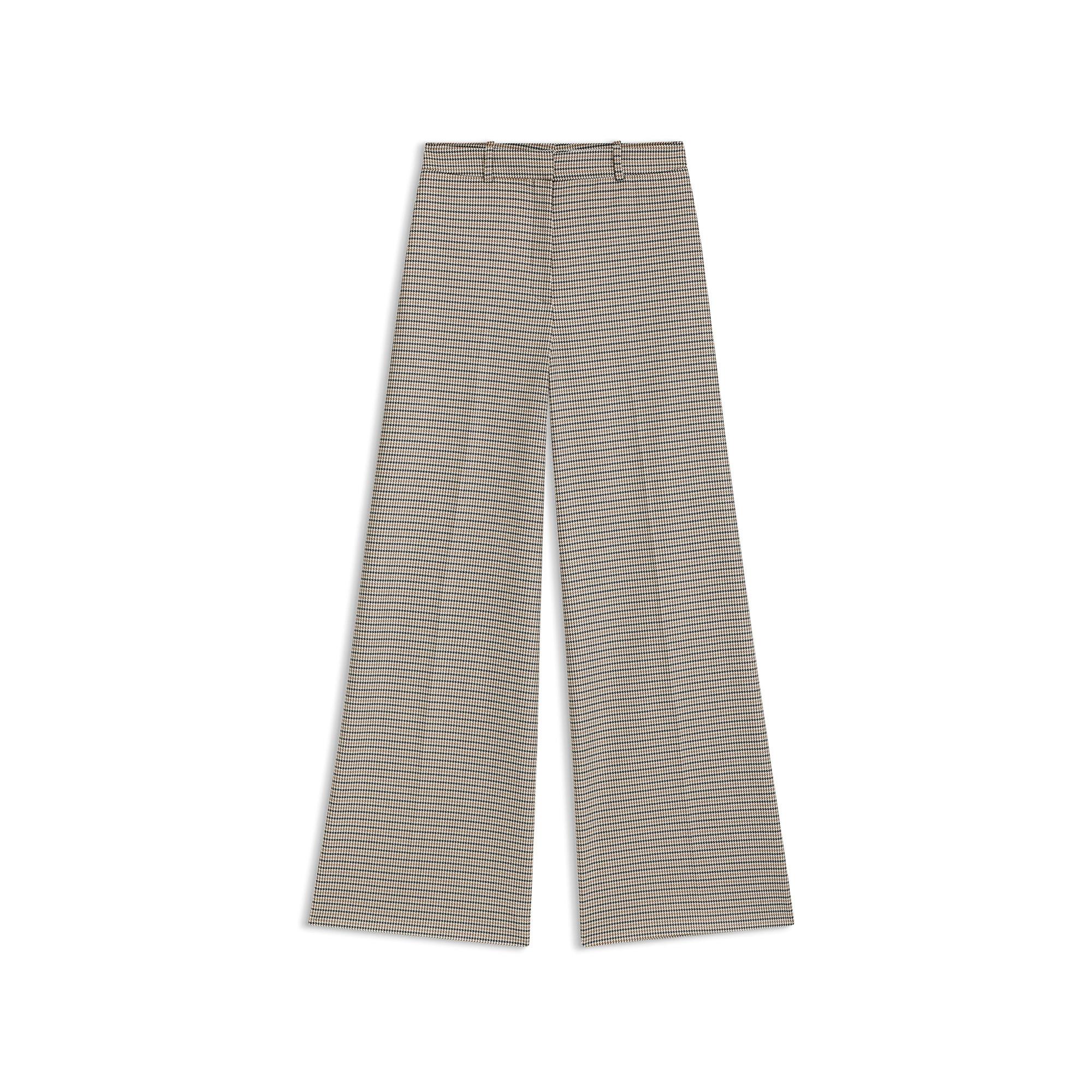 Ce pantalon présente un motif pied-de-poule classique, offrant un look intemporel et sophistiqué. La coupe large assure une silhouette confortable et élégante, en faisant un ajout polyvalent à toute garde-robe.