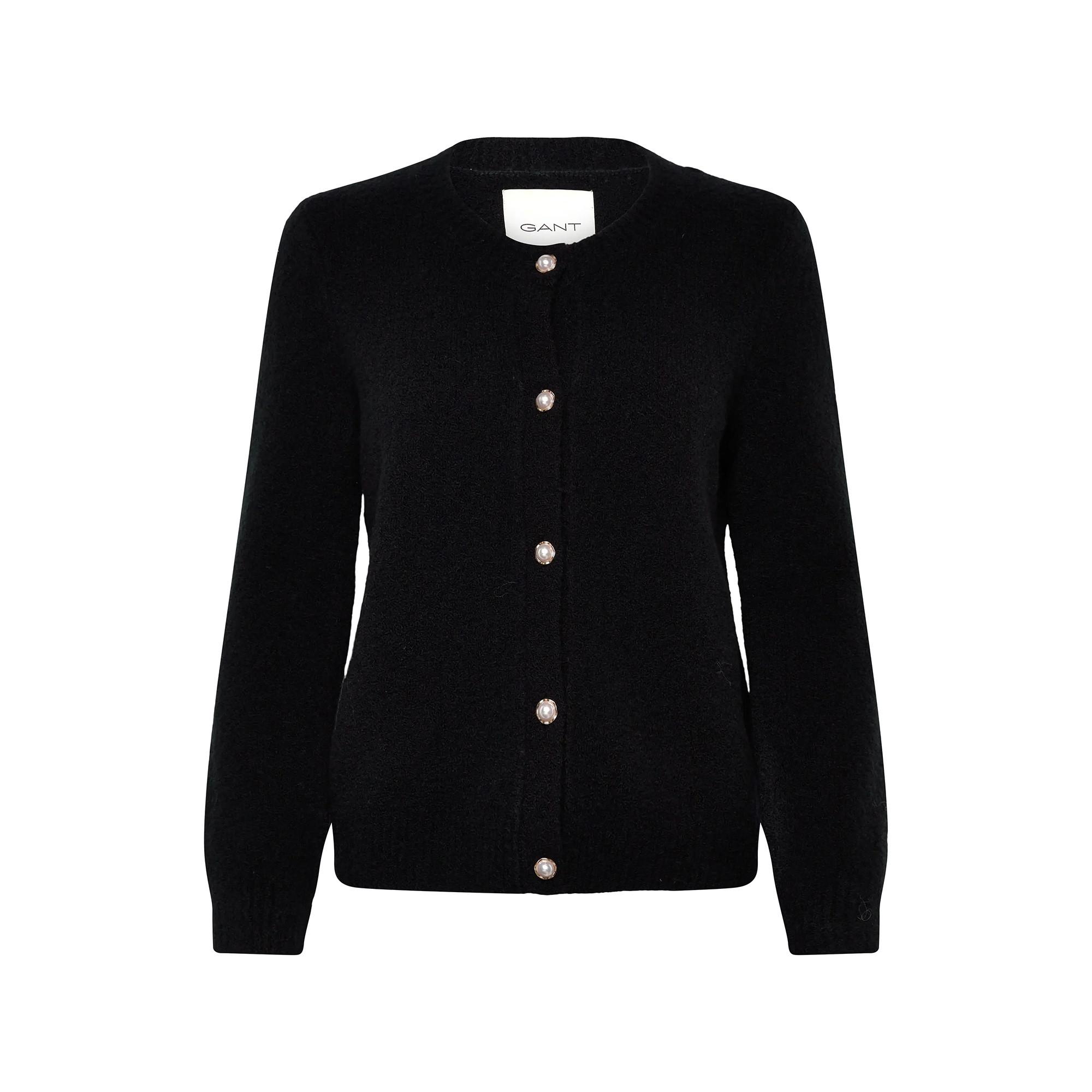 Ce cardigan en mélange de laine de qualité avec fil bouclé apporte une touche élégante à la garde-robe. Il se distingue par sa coupe Regular, son col rond classique, sa patte de boutonnage ornée de boutons imitation nacre dorés et ses finitions côtelées. Une pièce essentielle pour la mi-saison – chaude, raffinée et facile à assortir.
