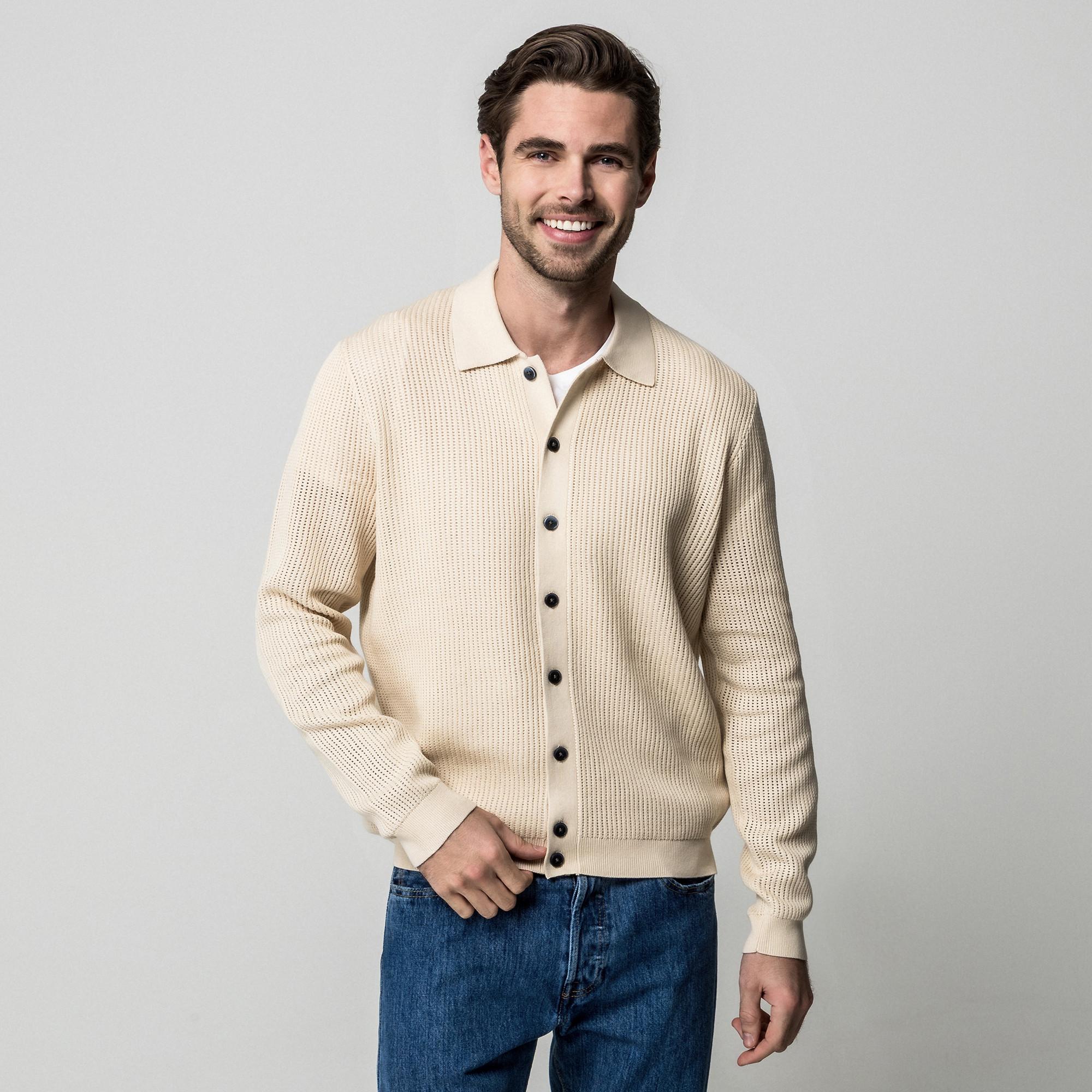 Ce pull en maille boutonné allie confort et style, ce qui en fait un ajout polyvalent à toute garde-robe. Son design classique permet de l'habiller ou de le décontracter pour diverses occasions.