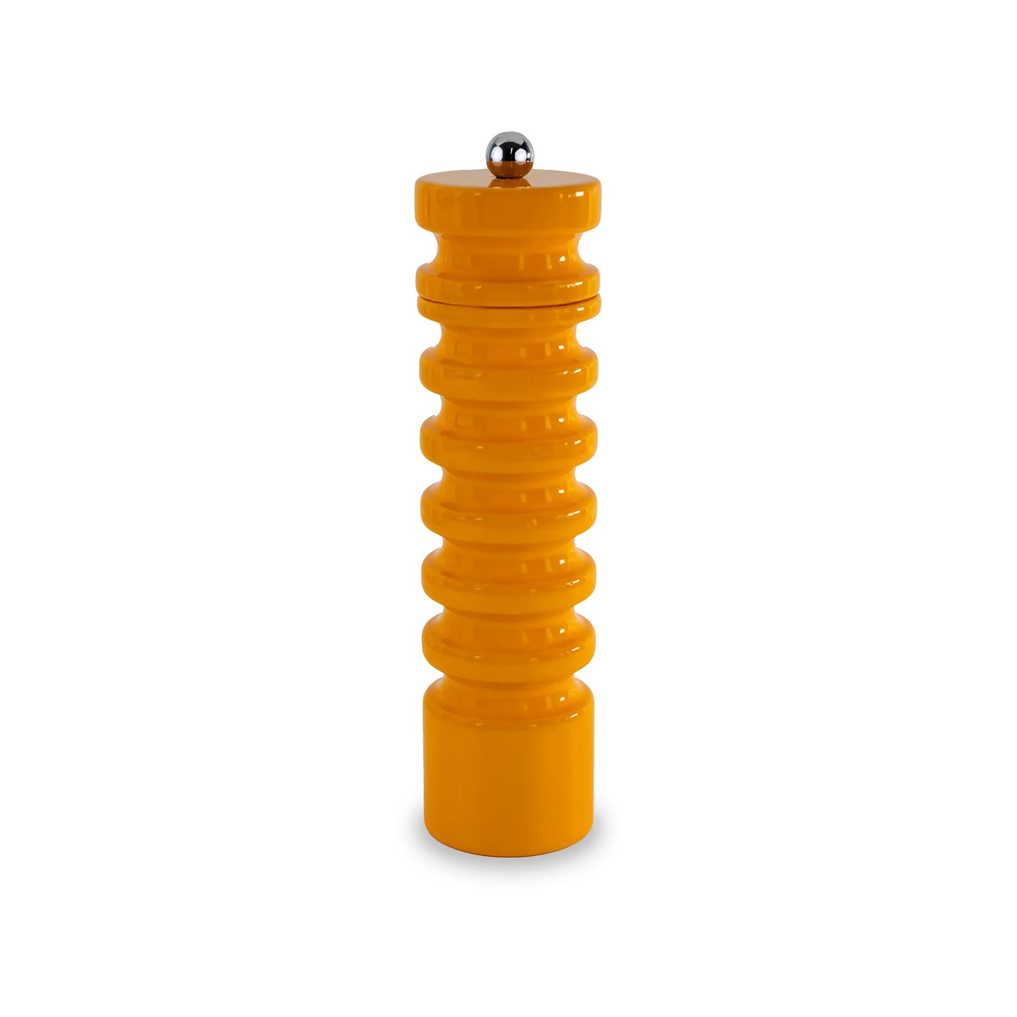 Moulin à sel/poivre en bois laqué avec broyeur en céramique. Grâce à son design innovant et coloré, ce moulin à poivre est un accroche-regard sur chaque table et lui confère couleur et originalité. Le degré de mouture est réglable. Dimensions : ø 5,5 x H 20,5 cm