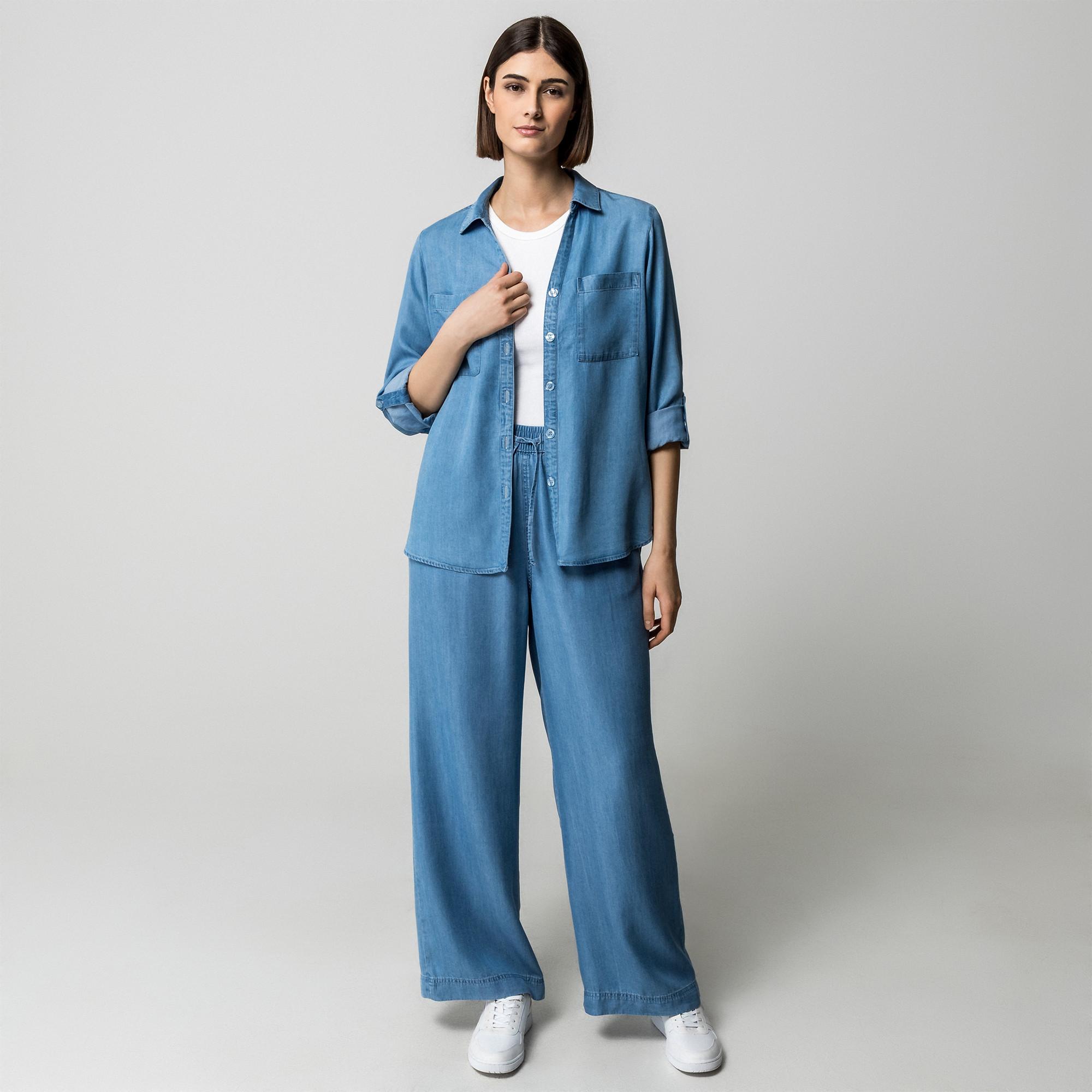 Ce chemisier à manches longues offre une coupe décontractée et un design classique, ce qui en fait un ajout polyvalent à toute garde-robe. La teinte bleu clair et le tissu doux procurent confort et style pour diverses occasions.