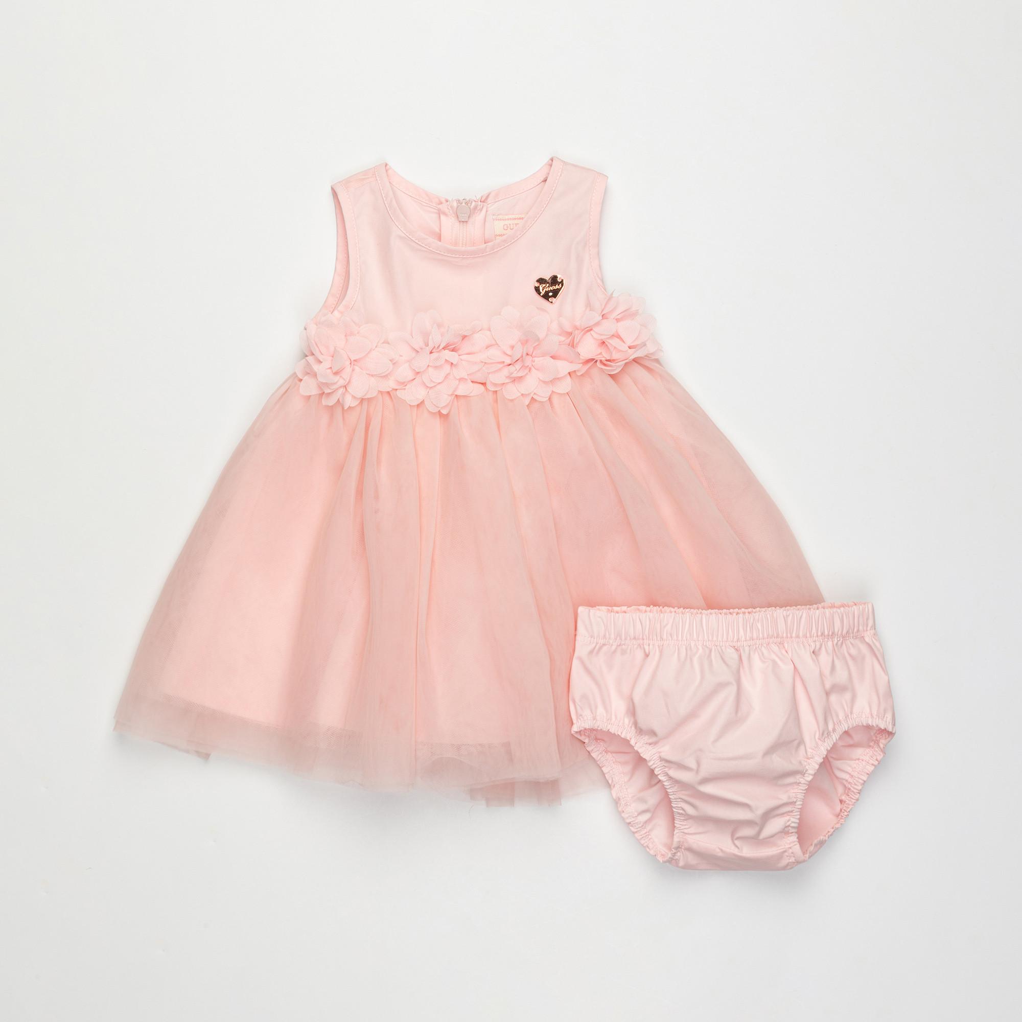 L’ensemble de robe de bébé Guess séduit par sa forme évasée et ses délicats détails floraux