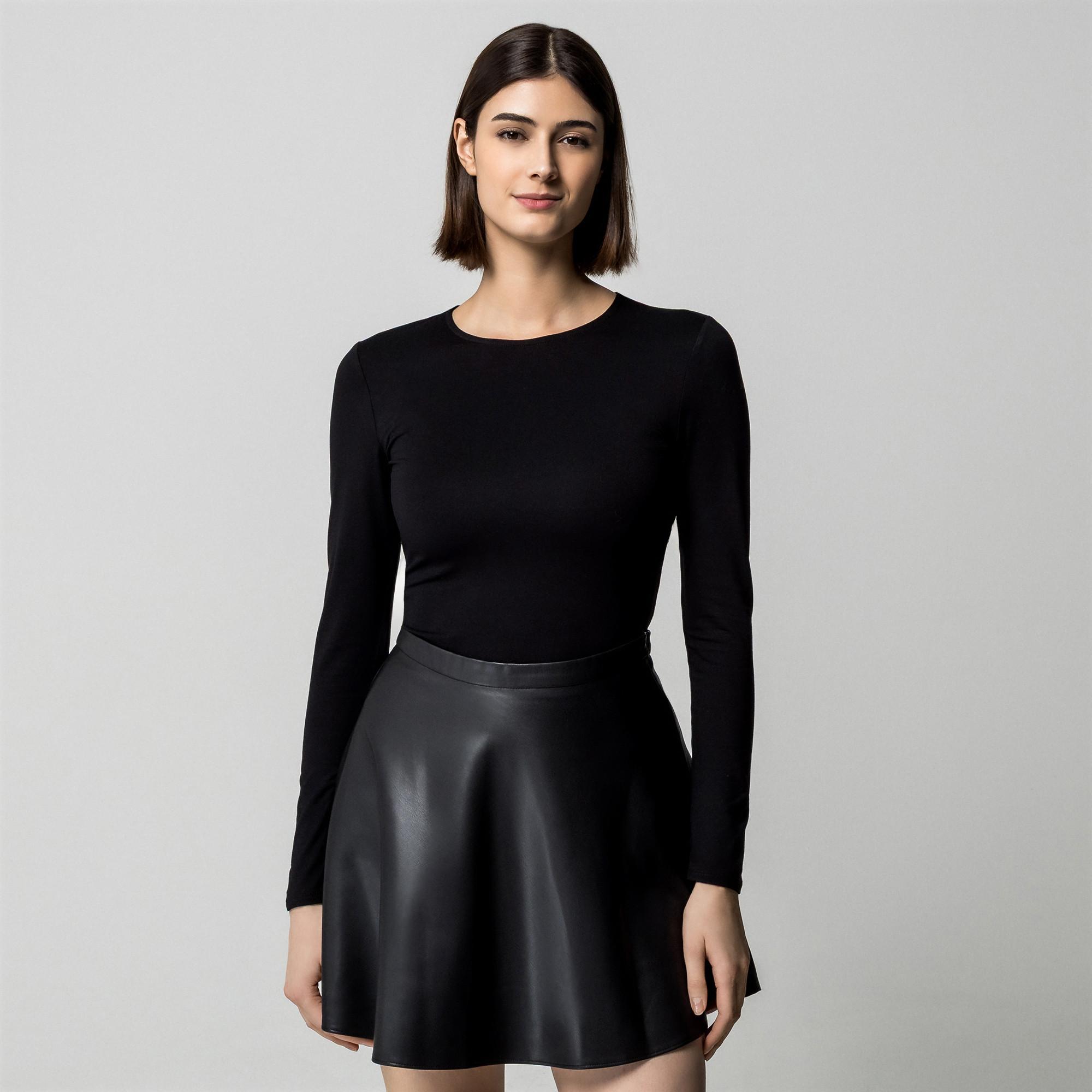 Ce top à manches longues présente un col rond classique et un détail de découpe saisissant au dos, ajoutant une touche moderne à un vêtement polyvalent. Le design offre une coupe ajustée confortable, le rendant adapté à diverses occasions.