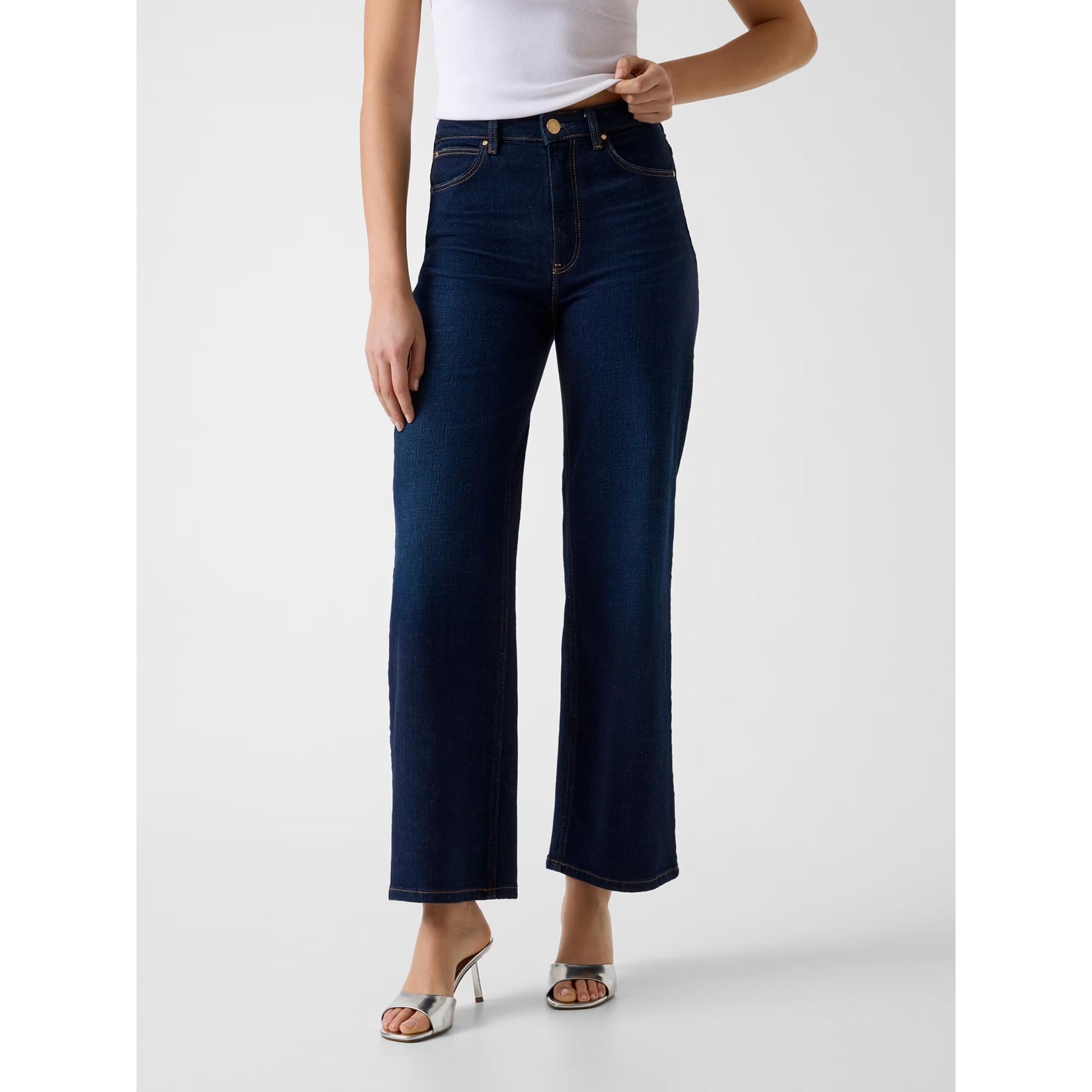Ce jean taille haute à jambe large offre un look intemporel et tendance. Le design présente un style classique à cinq poches, offrant à la fois fonctionnalité et esthétique traditionnelle. La coupe à jambe large assure un ajustement confortable et une silhouette moderne.