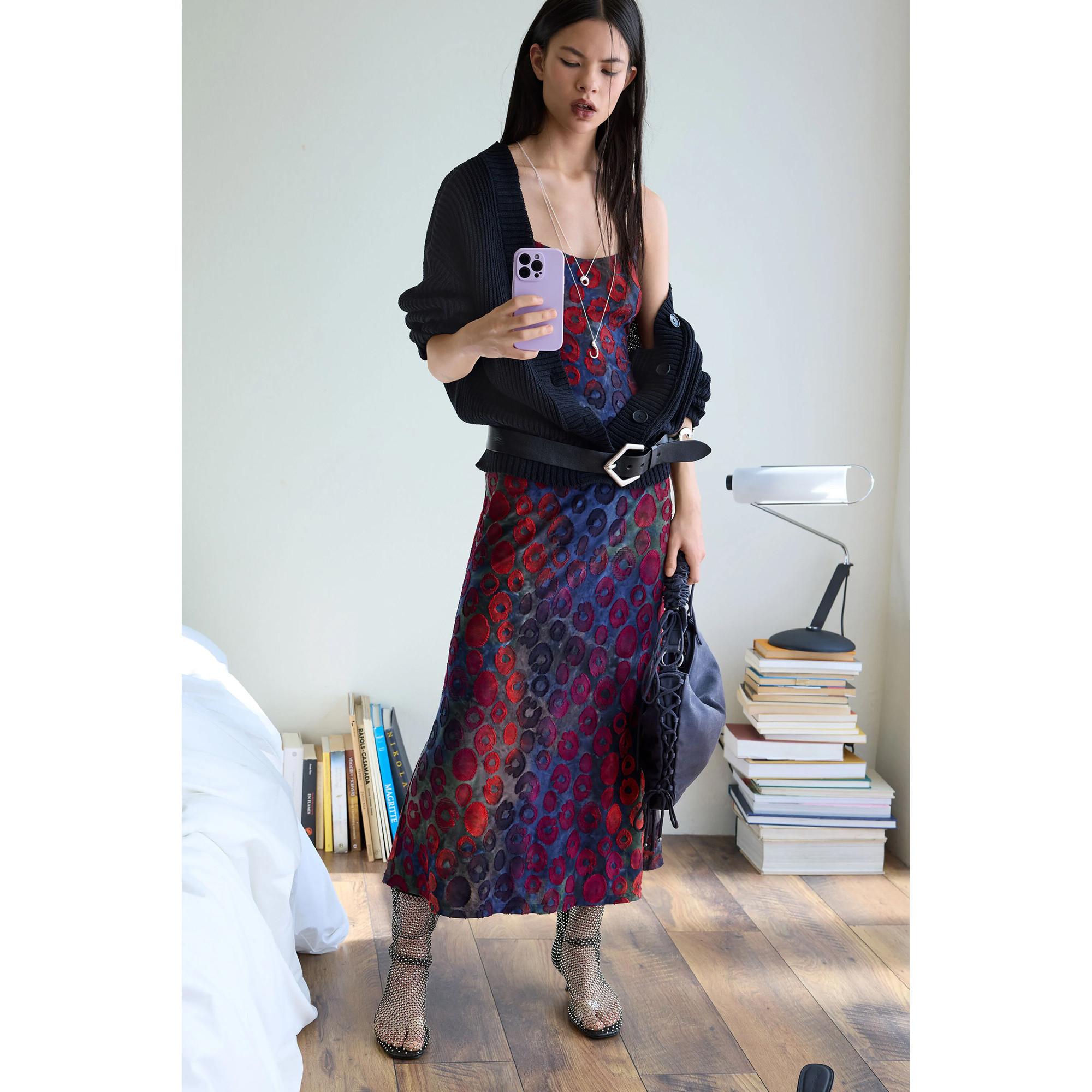 Cette robe longue arbore un motif floral éclatant, offrant un look élégant et accrocheur. Le design polyvalent la rend adaptée à diverses occasions.