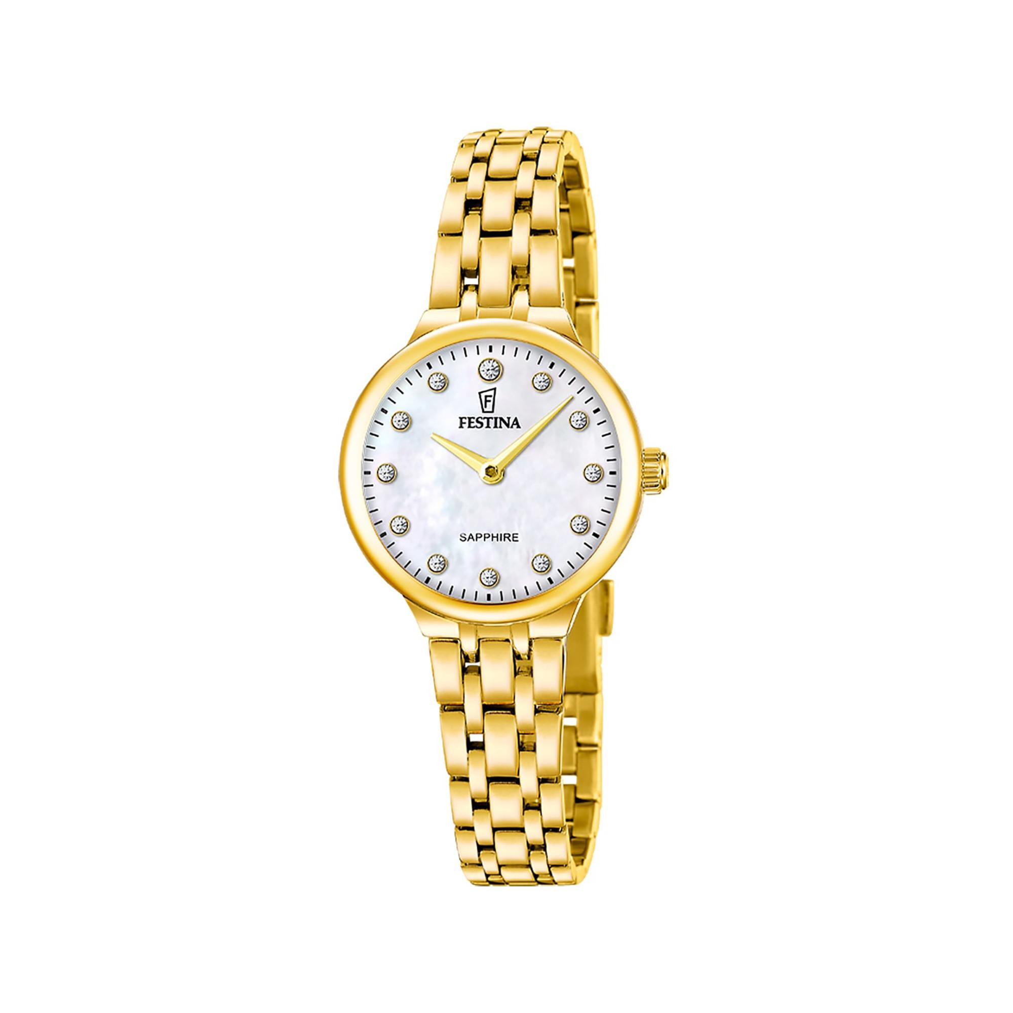 Cette montre de la collection Festina Mademoiselle incarne l'élégance féminine grâce à son design intemporel et à son boîtier délicat de 26 mm en acier inoxydable. Son cadran épuré, rehaussé d'indices scintillants et protégé par un verre saphir résistant, en fait un compagnon raffiné et durable.