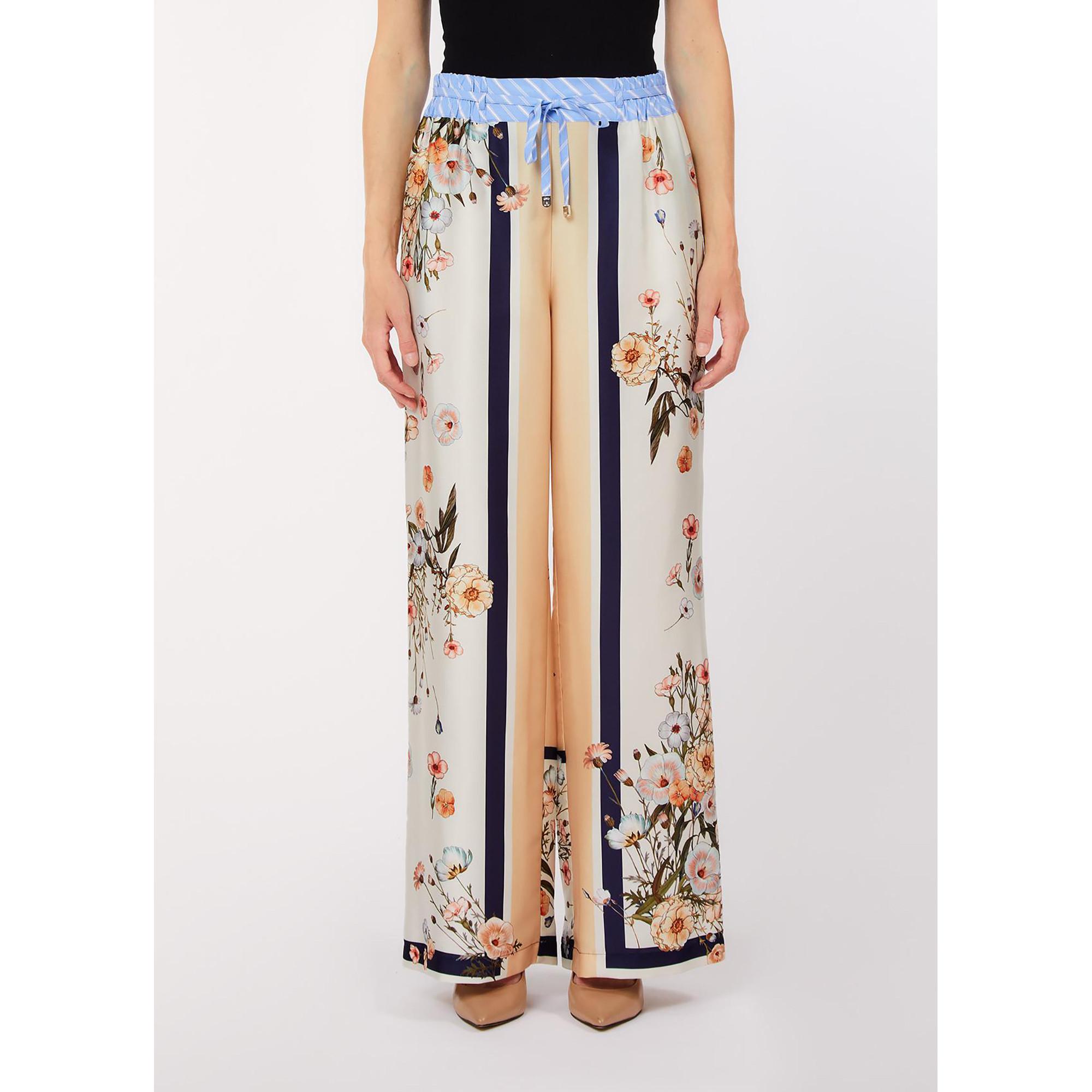 Ce pantalon présente une combinaison frappante de motifs floraux et rayés, offrant un look unique et tendance. La coupe large assure une silhouette confortable et fluide, le rendant adapté à diverses occasions.