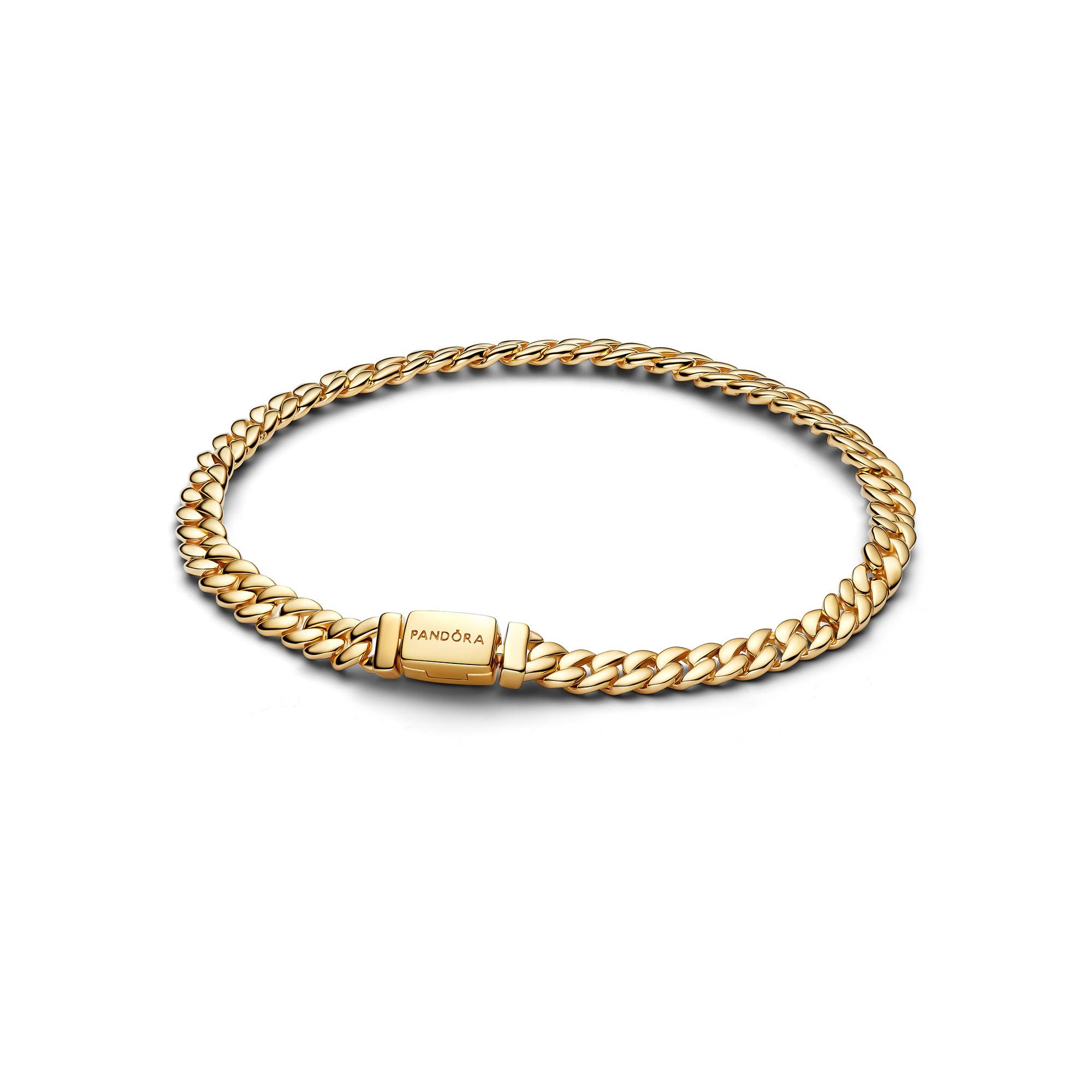 Sublimez votre look avec ce bracelet chaîne Cuban. Les deux côtés sont plaqués or et polis pour un brillant élevé. Il possède un fermoir plat estampé du logo Pandora.