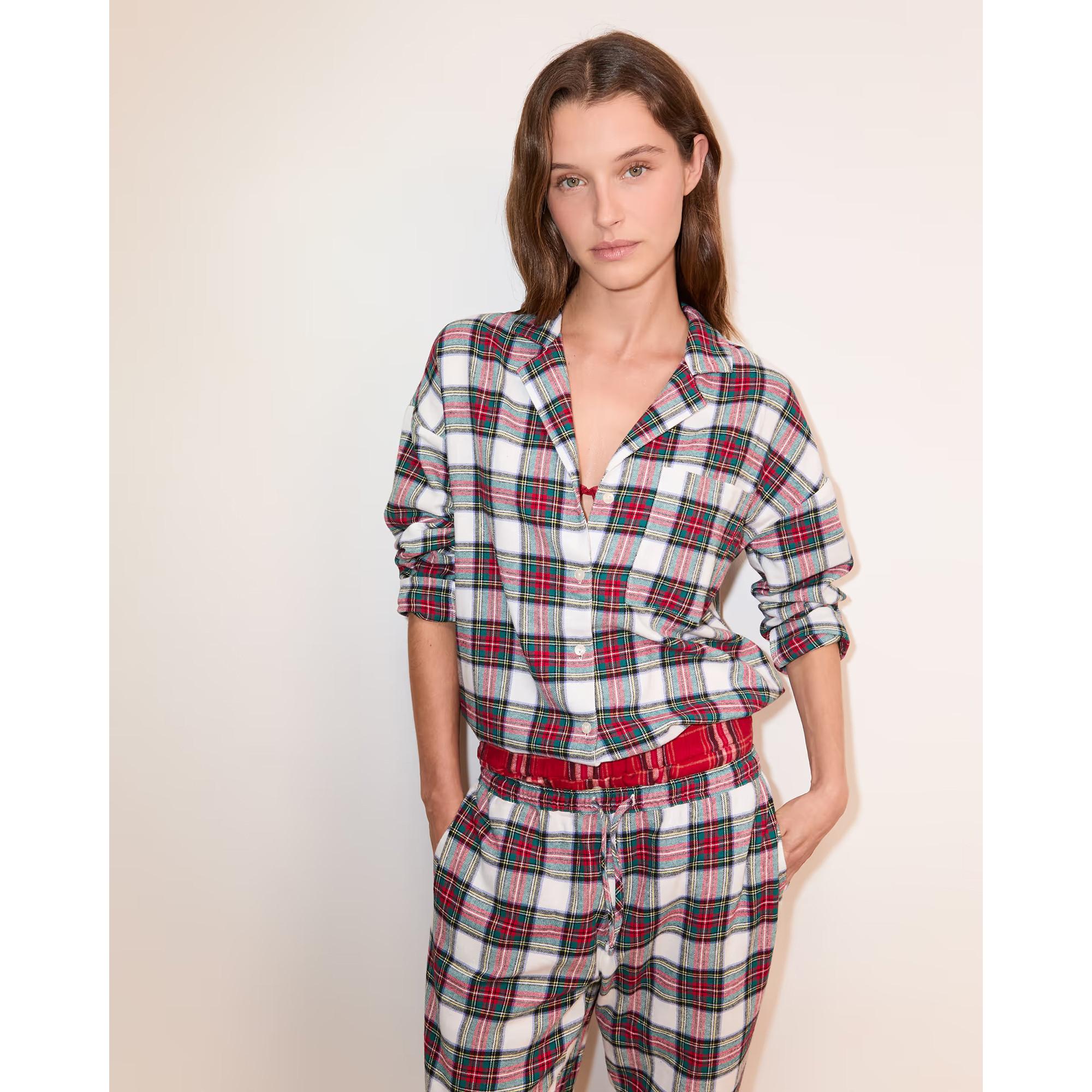 Cet ensemble de pyjama se compose d’une chemise et d’un pantalon en flanelle de coton douce. L’imprimé à carreaux tendance apporte une touche cosy et élégante. Il est parfait pour des nuits confortables et des moments cocooning.