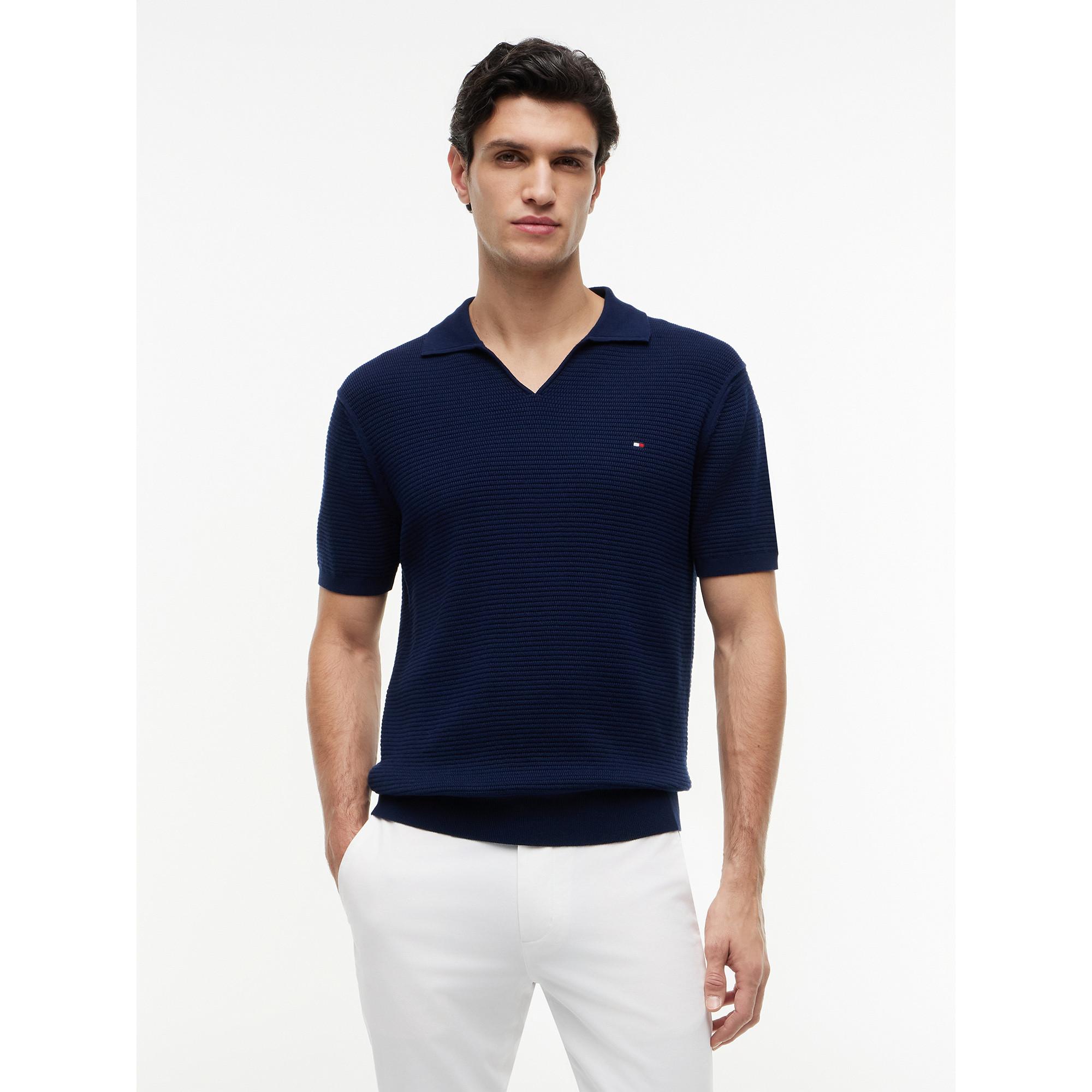 Ce polo offre un look classique et moderne, parfait pour diverses occasions. Le design présente un col polo traditionnel et des manches courtes, assurant un ajustement confortable. Le tricot texturé ajoute un détail subtil à l'apparence générale.