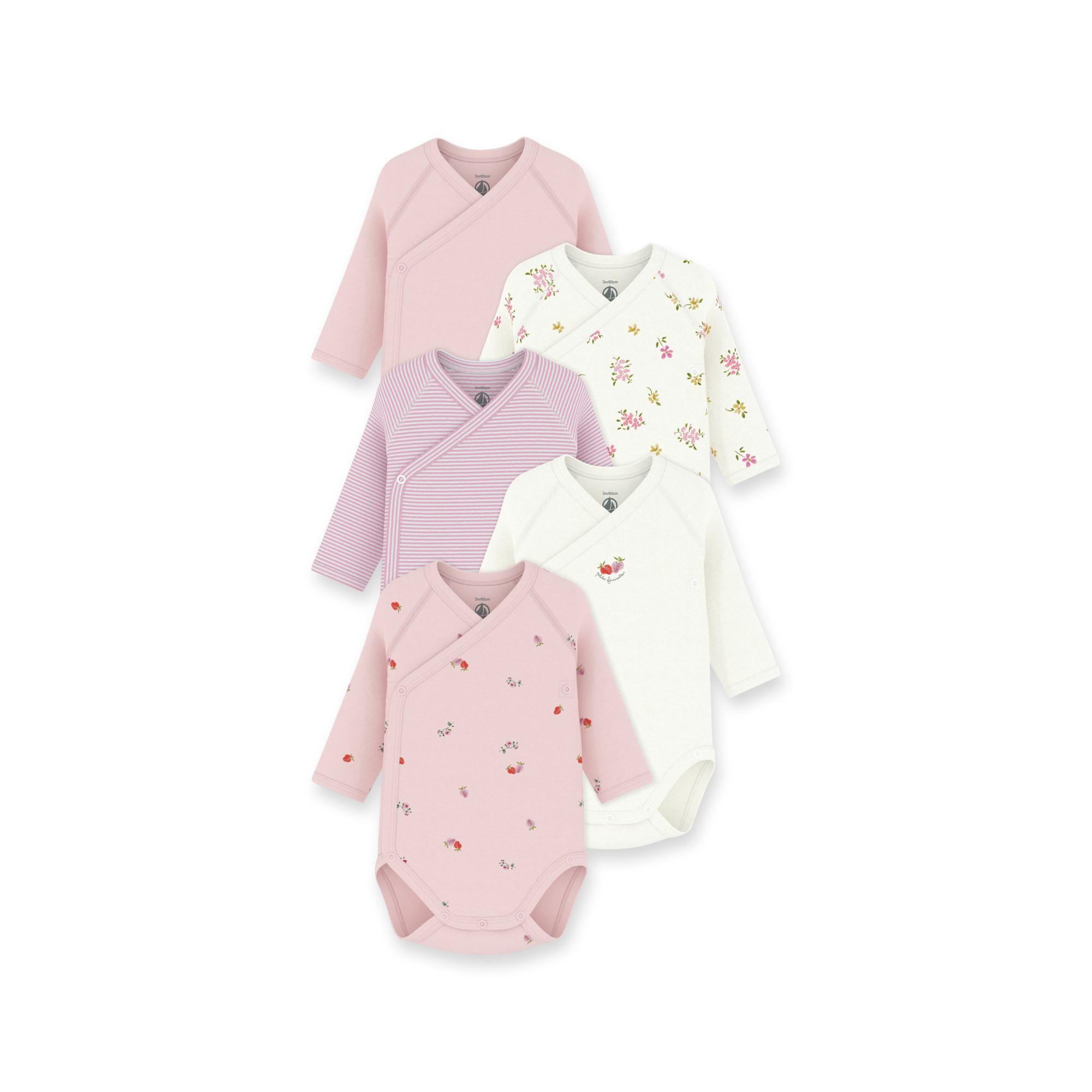Lot de 5 t-shirts bodys à manches longues pour filles en maille côtelée 1X1,