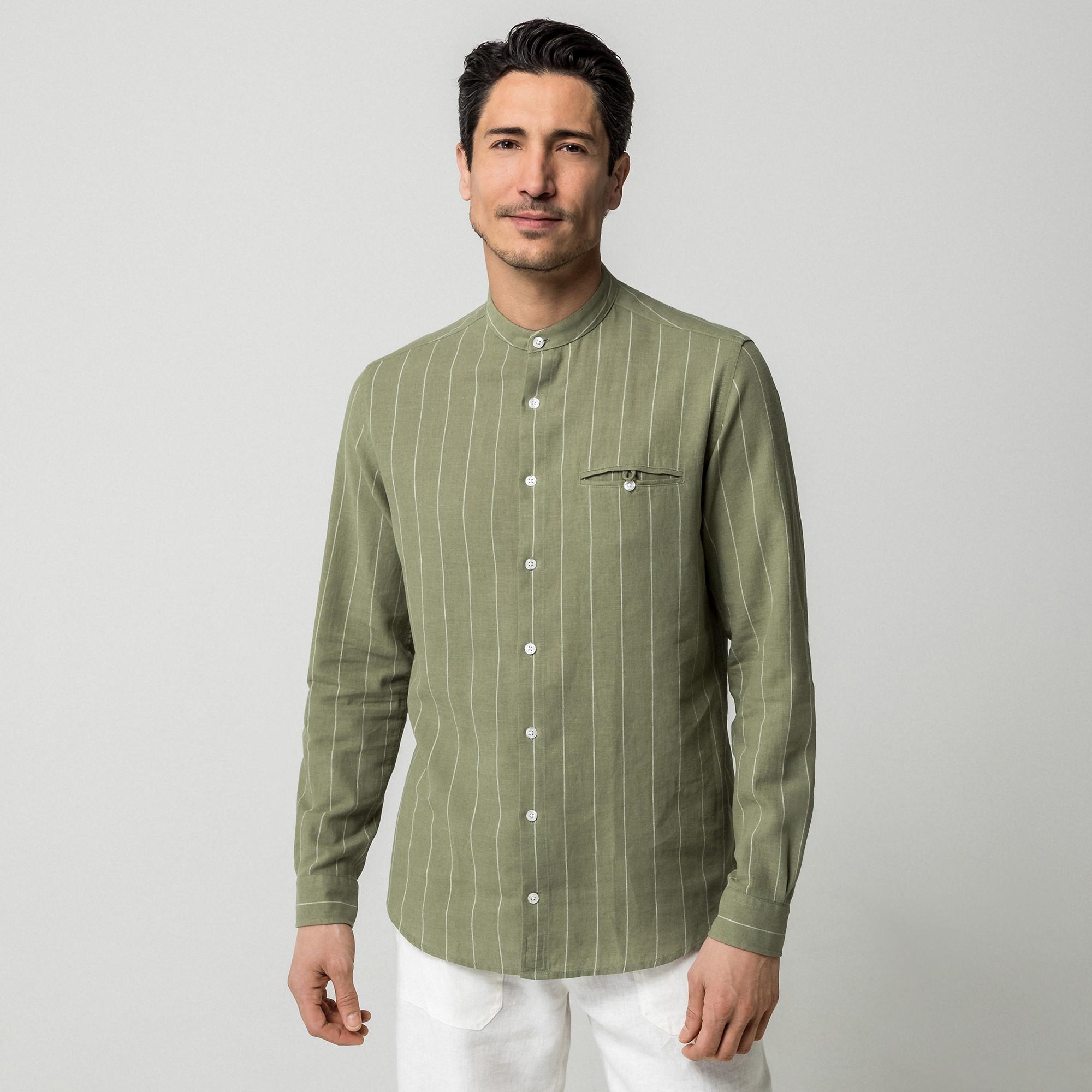 Manor Man, Chemise rayée à manches longues avec col mandarin