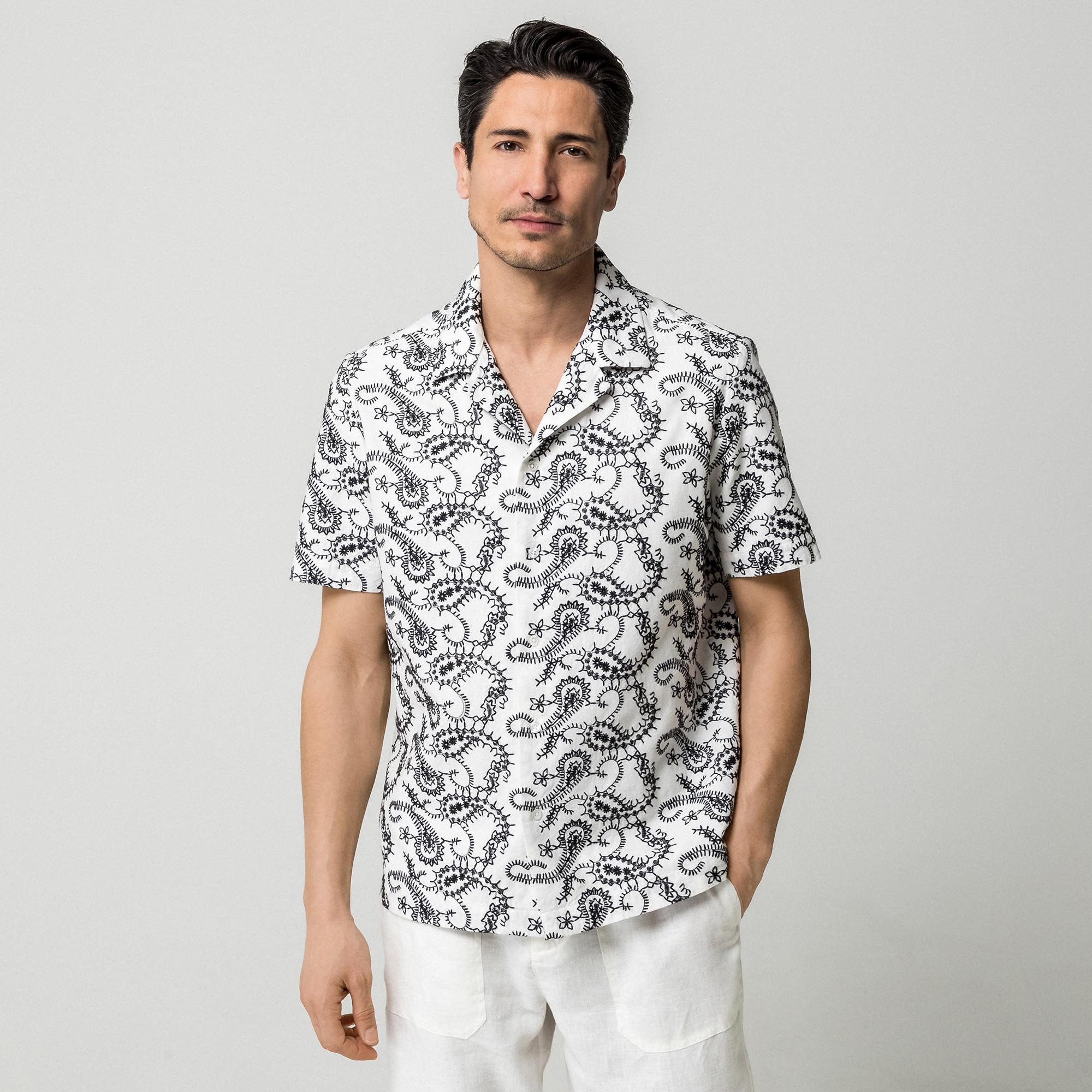 Cette chemise à manches courtes arbore un motif distinctif, ce qui en fait un choix élégant pour diverses occasions. Le design comprend un col classique et une patte de boutonnage pour un look raffiné.