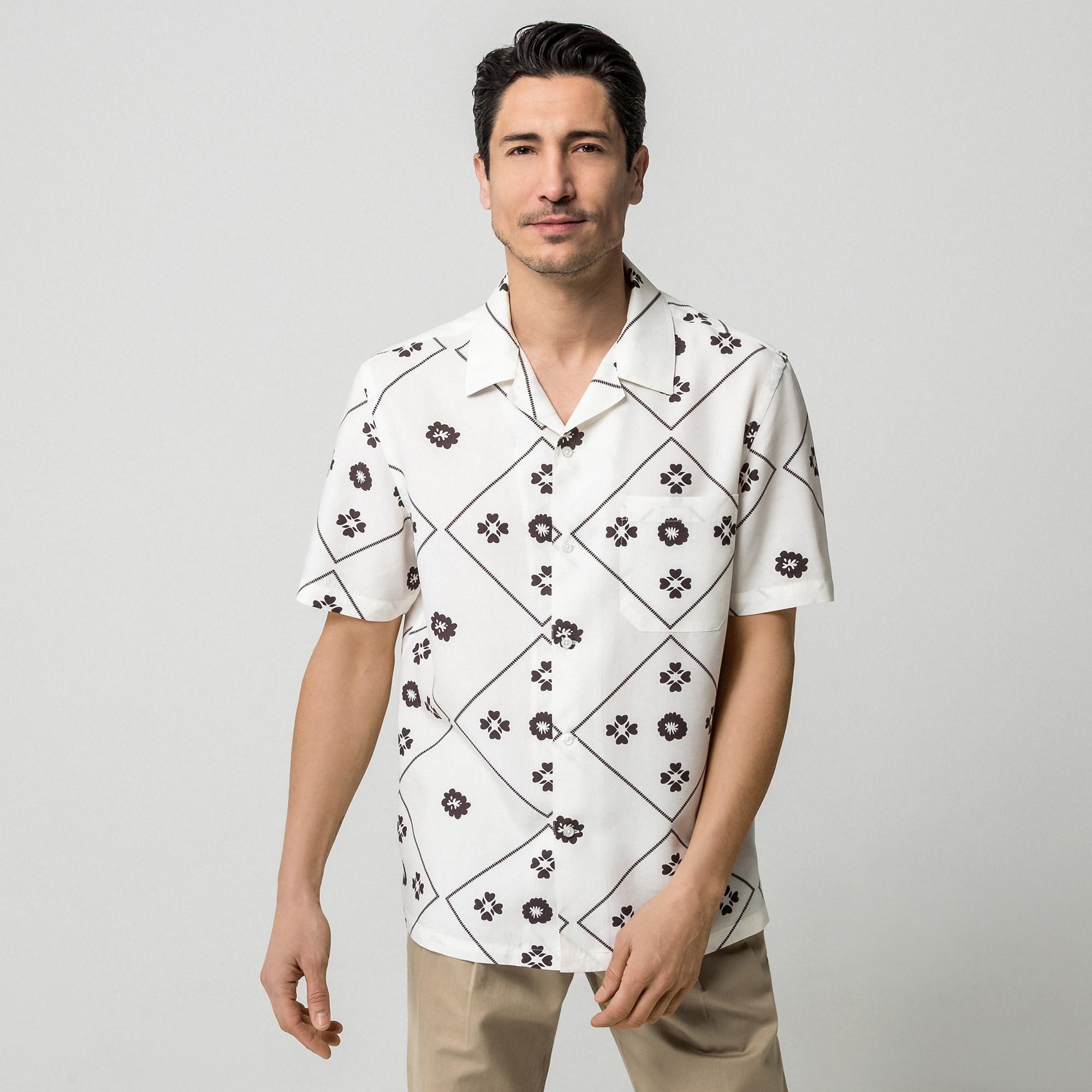 Cette chemise à manches courtes arbore un motif floral distinctif, offrant un look élégant et contemporain. Le design comprend un col classique et une poche poitrine, alliant fonctionnalité et esthétique à la mode.