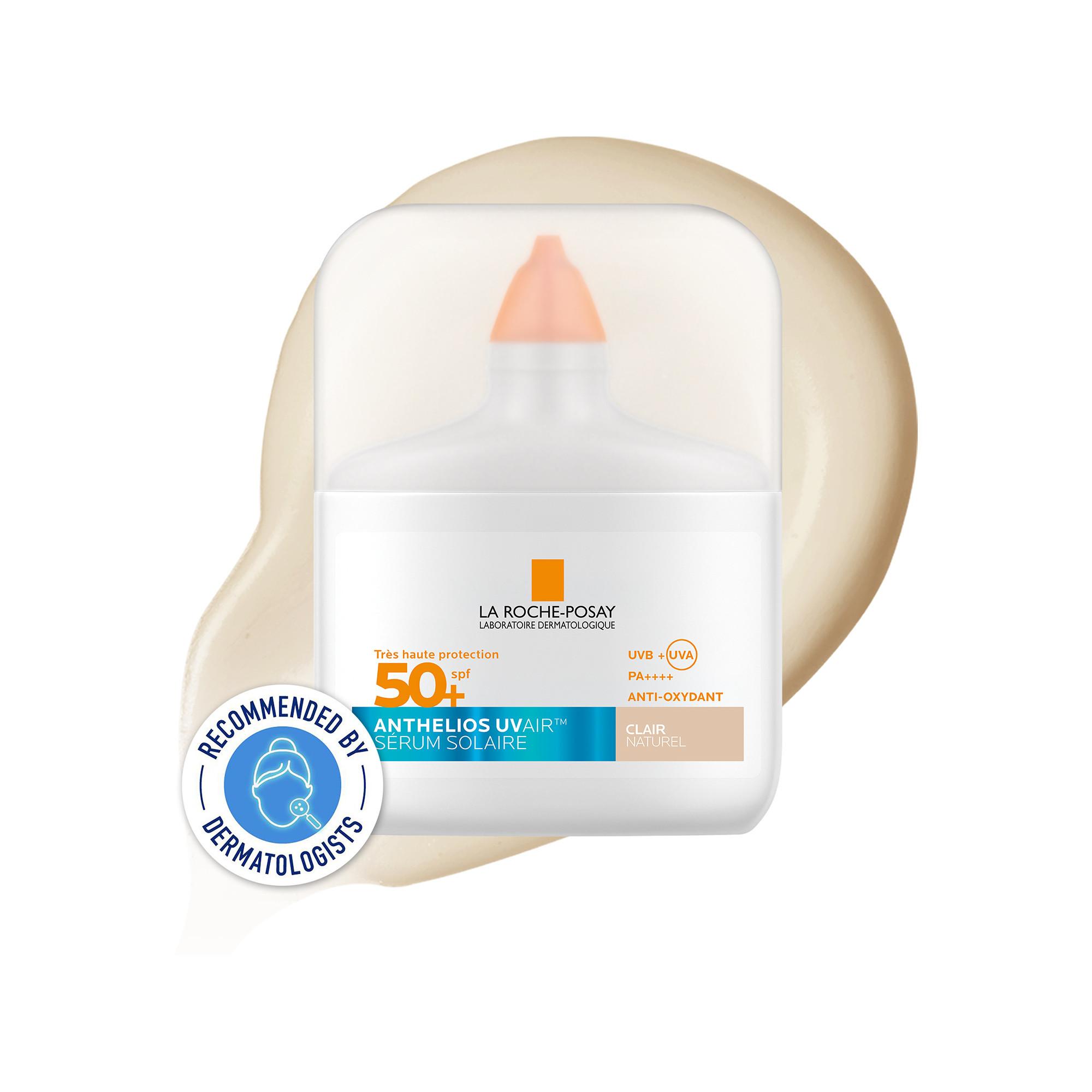 Indice SPF quotidien très élevé. Agit comme un soin de la peau, aussi léger que l'air. La Roche Posay New Anthelios UVAIR Serum Sunscreen SPF50+ Light, un sérum solaire teinté aussi léger que l'air qui se fond parfaitement sur la peau. Enrichie en acide hyaluronique, en niacinamide et en vitamine E, cette formule hydrate la peau et aide à protéger la barrière cutanée. Offre jusqu'à 16 heures d'effet matifiant et 24 heures d'hydratation. Pour tous les types de peau, hypoallergénique, testé sous contrôle dermatologique et ophtalmologique. Formulé pour limiter les picotements oculaires. Marque n° 1 recommandée par les dermatologues pour la protection solaire au Royaume-Uni