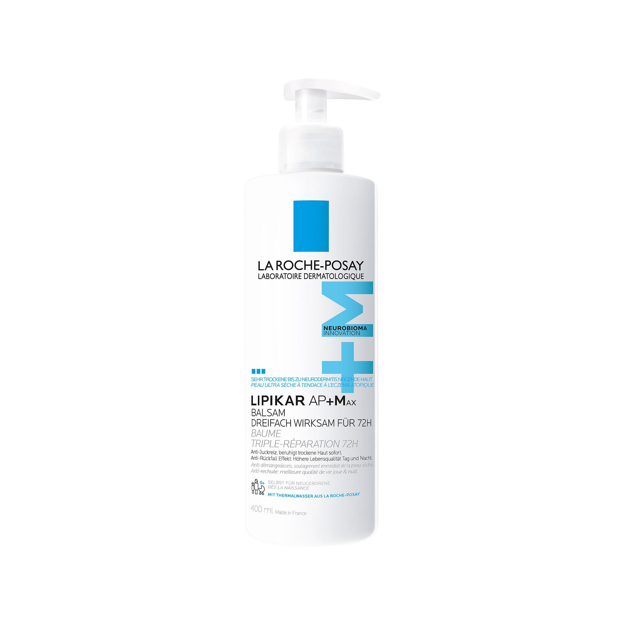 La Roche Posay LIPIKAR Baume AP+Max Crème pour le corps Cette lotion corporelle relipidante à effet anti-rechute pour le visage et le corps hydrate et apaise immédiatement après application les peaux extrêmement sèches et sujettes à l'eczéma et aux allergies chez les bébés, les enfants et les adultes, sans laisser de film gras ou collant. Grâce à sa nouvelle formule triple action contenant le complexe innovant Neurobioma, le baume LIPIKAR agit désormais jusqu'à 72 heures. Cette lotion corporelle riche, qui procure un effet anti-démangeaisons 24 heures sur 24, convient aux peaux sensibles, de 0 à 100 ans. Le baume corporel LIPIKAR à l'eau thermale et au complexe actif AP+Max avec Aqua Posae et Microresyl soutient le microbiome de la peau et renforce la barrière protectrice cutanée. Anciennement connu sous le nom de LIPIKAR Baume AP+M, il arbore désormais un nouveau nom, un nouveau design et une formule encore plus efficace !