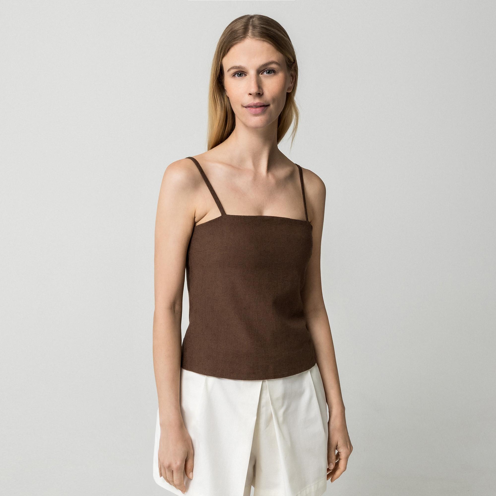 Ce débardeur présente une encolure carrée moderne et de fines bretelles spaghetti, offrant une esthétique chic et minimaliste. Le design assure un ajustement confortable, ce qui en fait un ajout polyvalent à toute garde-robe.