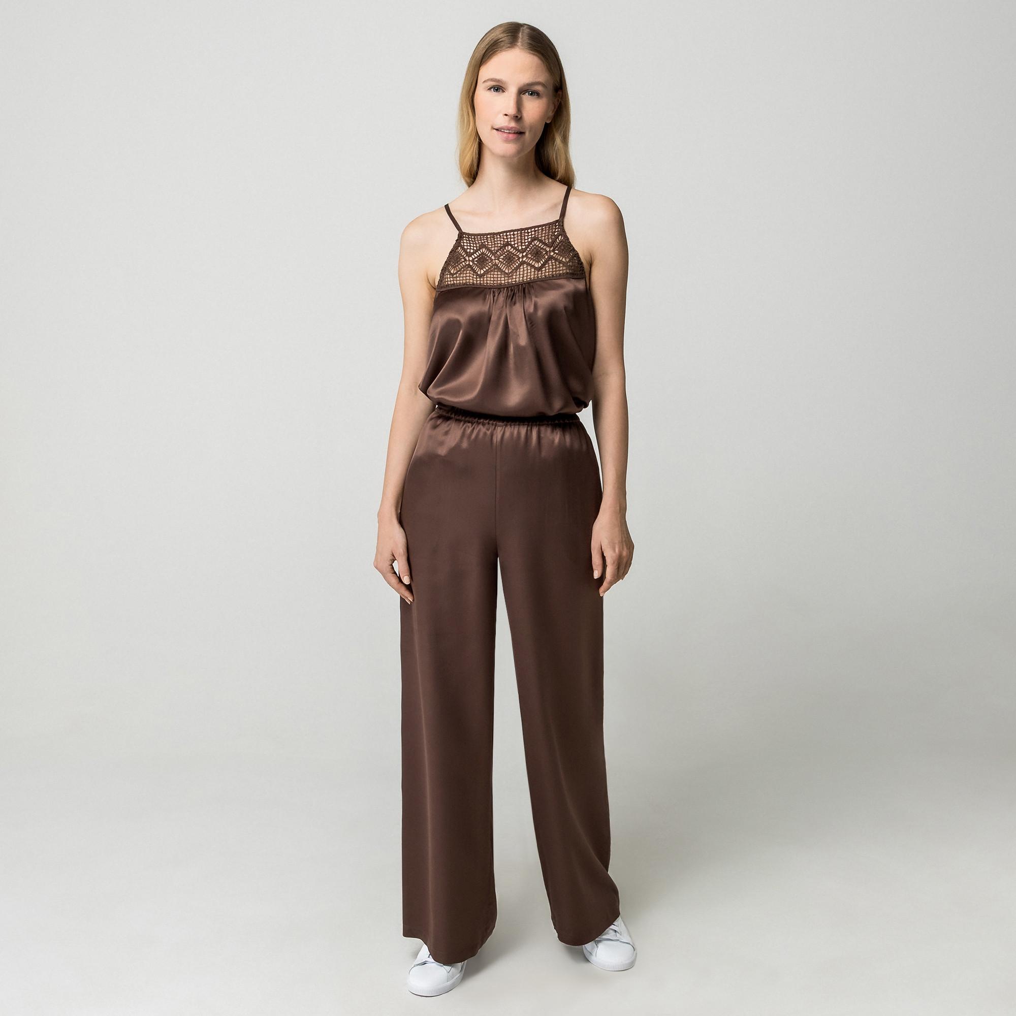 Ce pantalon large offre une option confortable et élégante pour diverses occasions. Le design présente une coupe décontractée au niveau des jambes, offrant une liberté de mouvement et une silhouette contemporaine. La taille élastique assure un ajustement sûr et confortable.