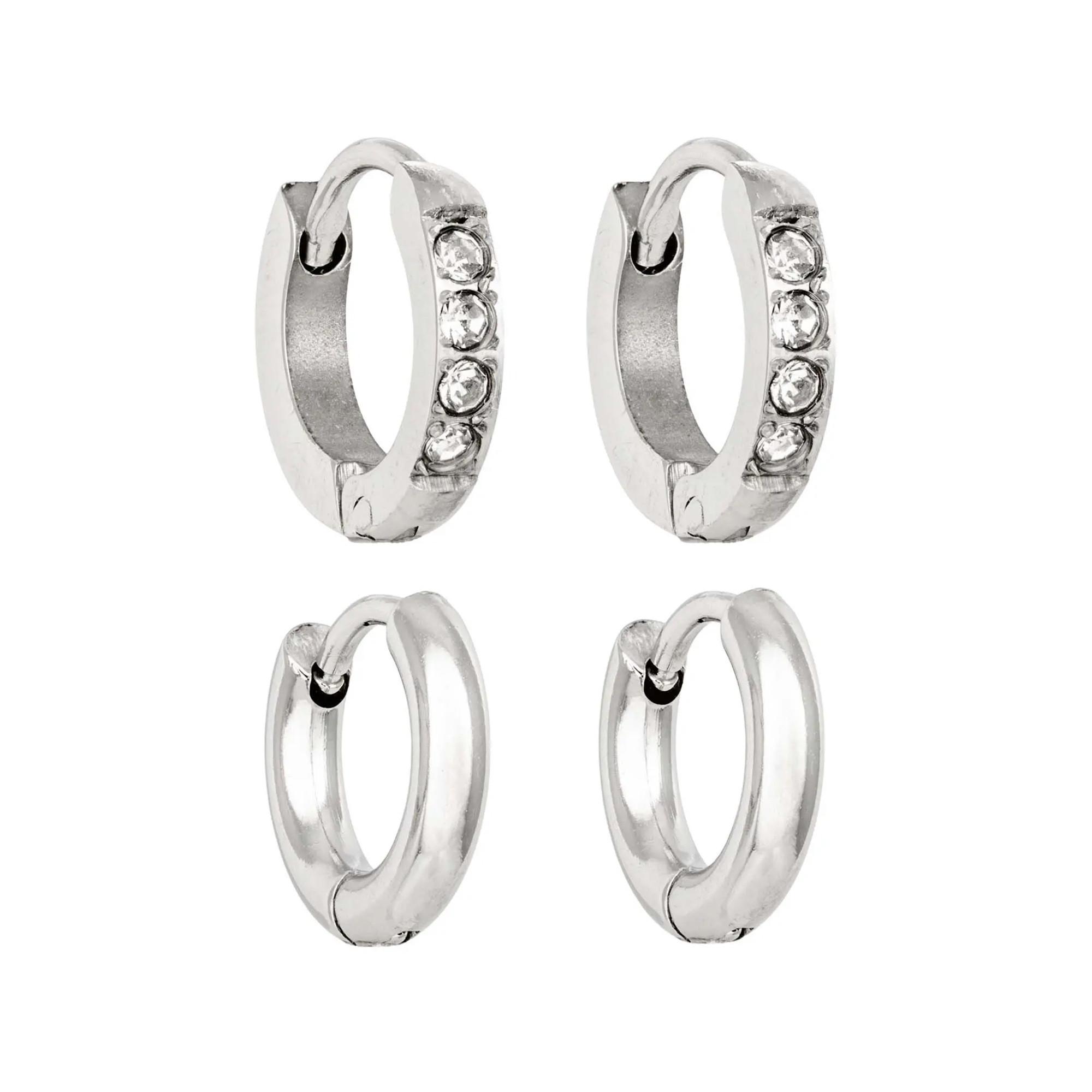 Le set de créoles - Micro Steel scintille en argent et se compose de deux mini-créoles aux designs différents. Les deux créoles sont en acier inoxydable résistant à l’eau.