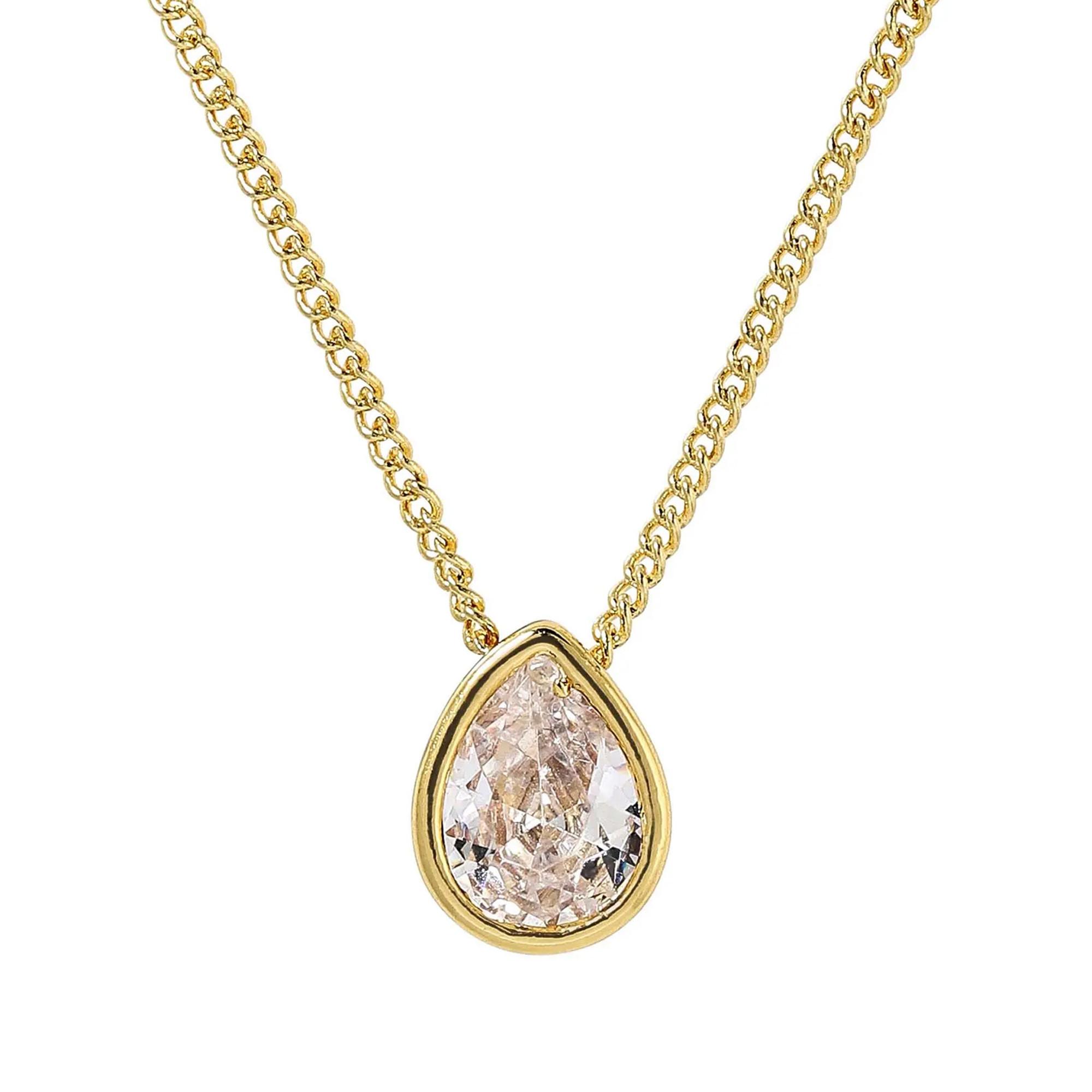 Le collier - Plated Drop scintille dans une teinte dorée et est plaqué or. Cet accessoire classique présente un pendentif en forme de goutte orné de pierres en zircon cubique étincelantes.