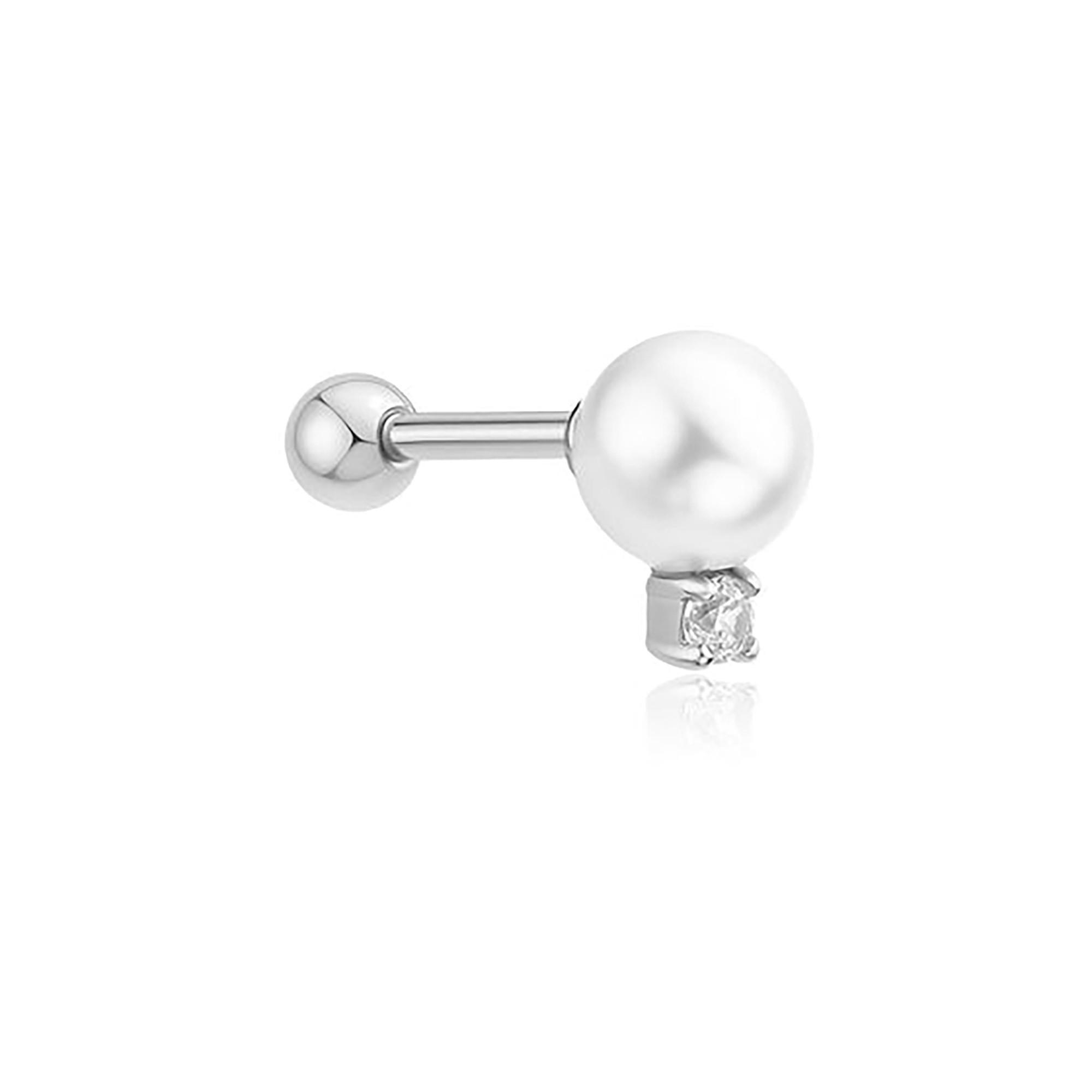 Ce clou en argent sterling 925 avec placage rhodium associe un zirconia étincelant et une perle de coquillage élégante pour un accent brillant. Avec des dimensions de 7 x 5 mm et un poids de seulement 0,5 g, il se porte seul pour un glamour discret ou se combine pour créer un ear stack raffiné.