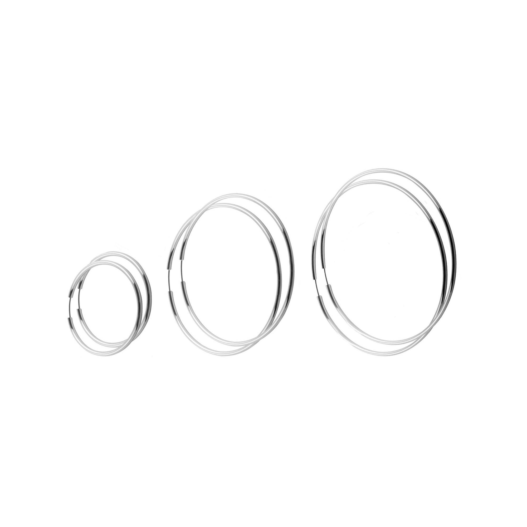 Ce set de trois créoles argentées va du discret au XXL, offrant la taille parfaite pour chaque occasion. Avec des diamètres de 4 cm, 6,5 cm et 8,5 cm, il permet de créer des looks élégants et remarquables.