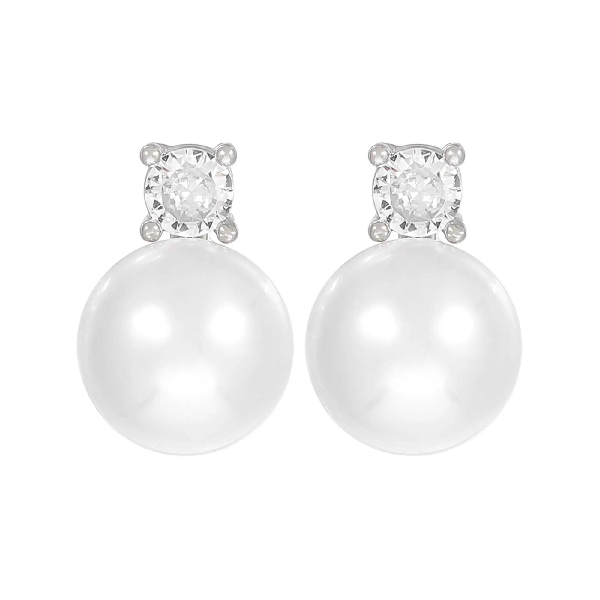 Les clous d’oreilles - Classic Pearls scintillent en argenté et sont rhodiés. Les perles artificielles brillent en blanc et sont ornées en haut de pierres en zircon cubique.