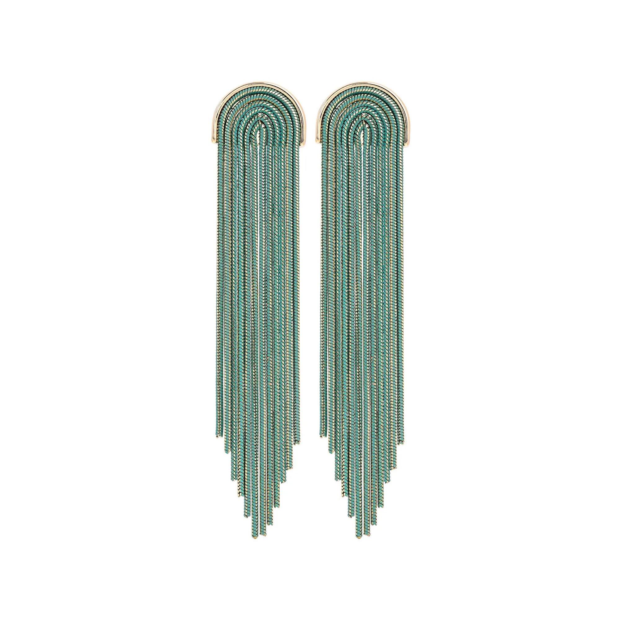 Les clous d’oreilles - Green Waterfall sont composés de chaînes à franges vertes, décorées en plus de touches dorées. Les clous d’oreilles sont des boucles d’oreilles cascade et attirent vraiment le regard.