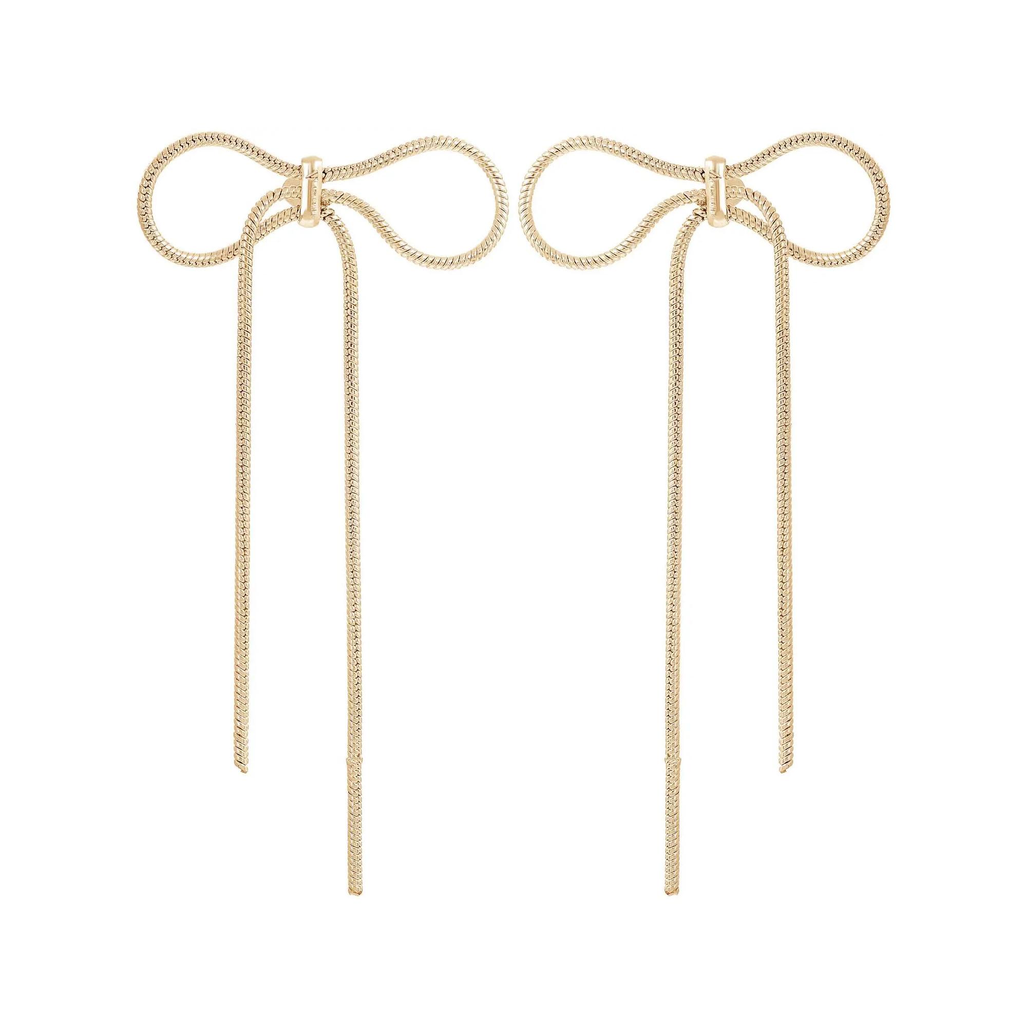 Les boucles d'oreilles "Shining Bows" scintillent en or et sont en forme de nœuds. Les nœuds sont faits de chaînes serpentines rondes. Ce magnifique accessoire se combine parfaitement avec d'autres bijoux dorés !