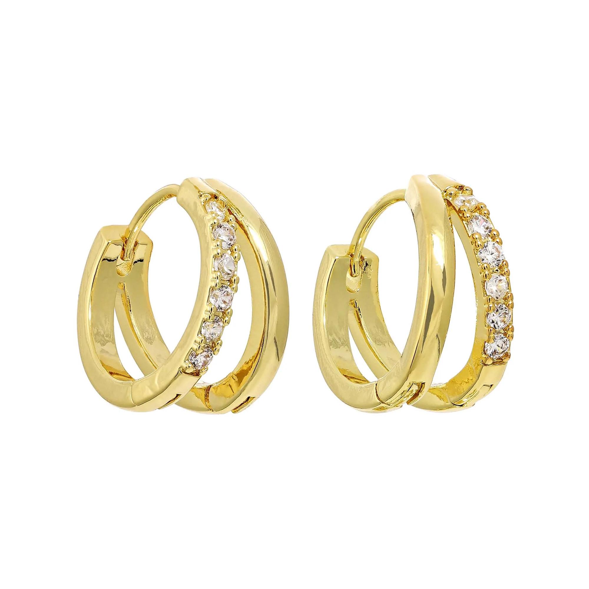 Les créoles "Glowy Rows" scintillent en or et sont composées de deux rangées. L'une des rangées est décorée de pierres en cubic zirconia étincelantes.
