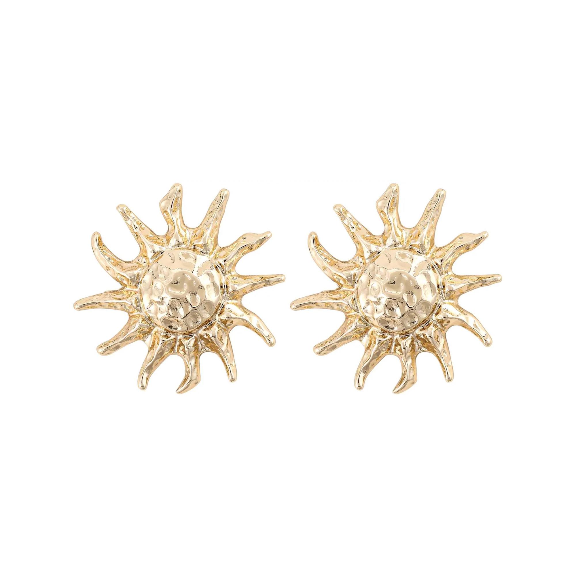 Les puces d'oreilles - Blazing Sun brillent en doré et dégagent une élégance pure avec leur design unique en forme de soleil. La surface martelée leur donne un aspect noble et fait main. Parfaites pour ajouter une touche éclatante à n'importe quel look !