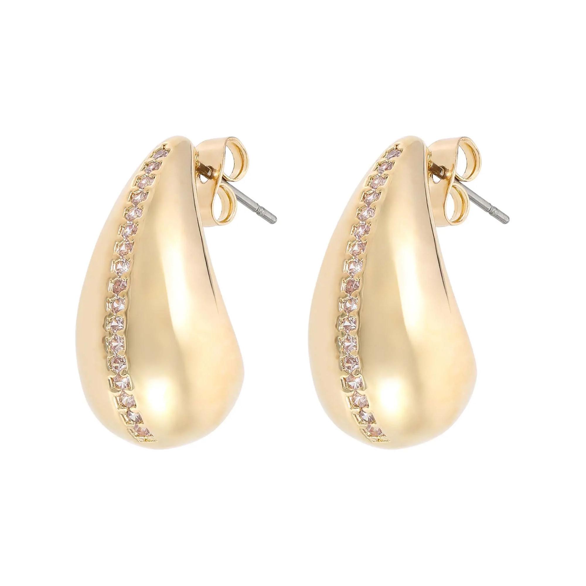 Les puces d'oreilles - Twinkling Line sont dorées et ornées d'une ligne de pierres scintillantes en cubic zirconia au centre. Les grandes puces d'oreilles sont en métal et sont légères grâce à leur espace intérieur. Leur design classique en forme de goutte les rend parfaites à combiner et, en raison de leur taille, elles sont un véritable accroche-regard.