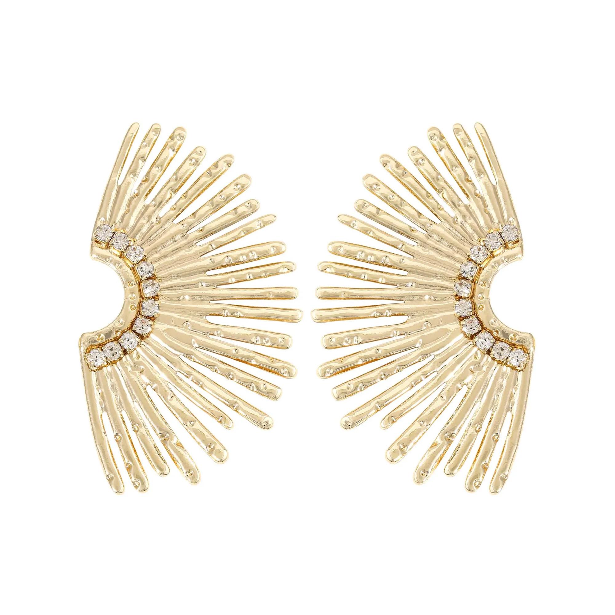 Les puces d'oreilles - Golden Sunlight sont dorées et ont une surface structurée. Elles sont chacune formées en demi-cercle, rappelant le soleil. La moitié intérieure du demi-cercle est ornée de petites pierres strass qui soulignent l'éclat chaleureux des boucles d'oreilles.