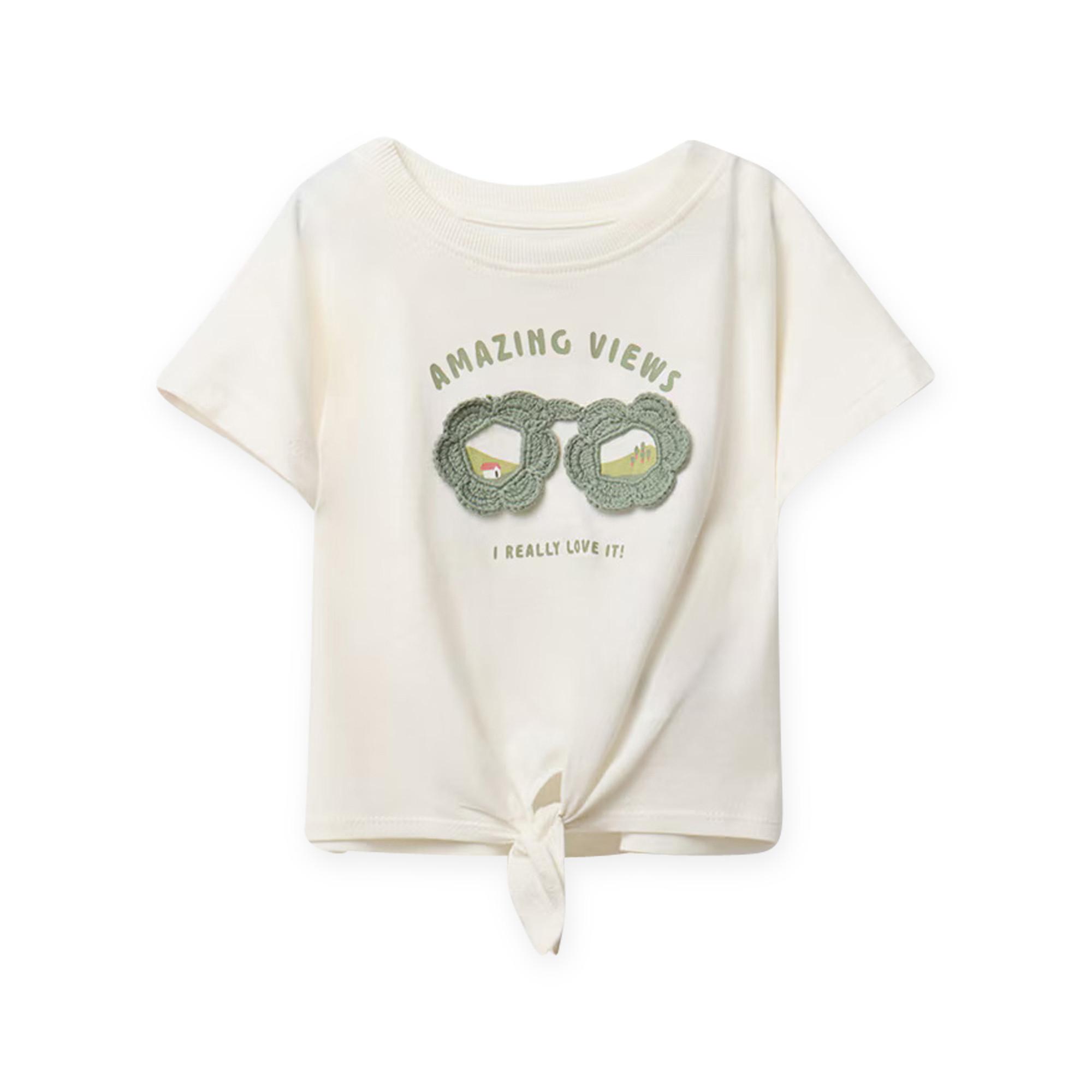 Ce t‑shirt séduit par son détail noué tendance et son motif lunettes original. La matière douce offre un confort agréable et convient parfaitement au quotidien. Un modèle moderne avec une touche ludique.