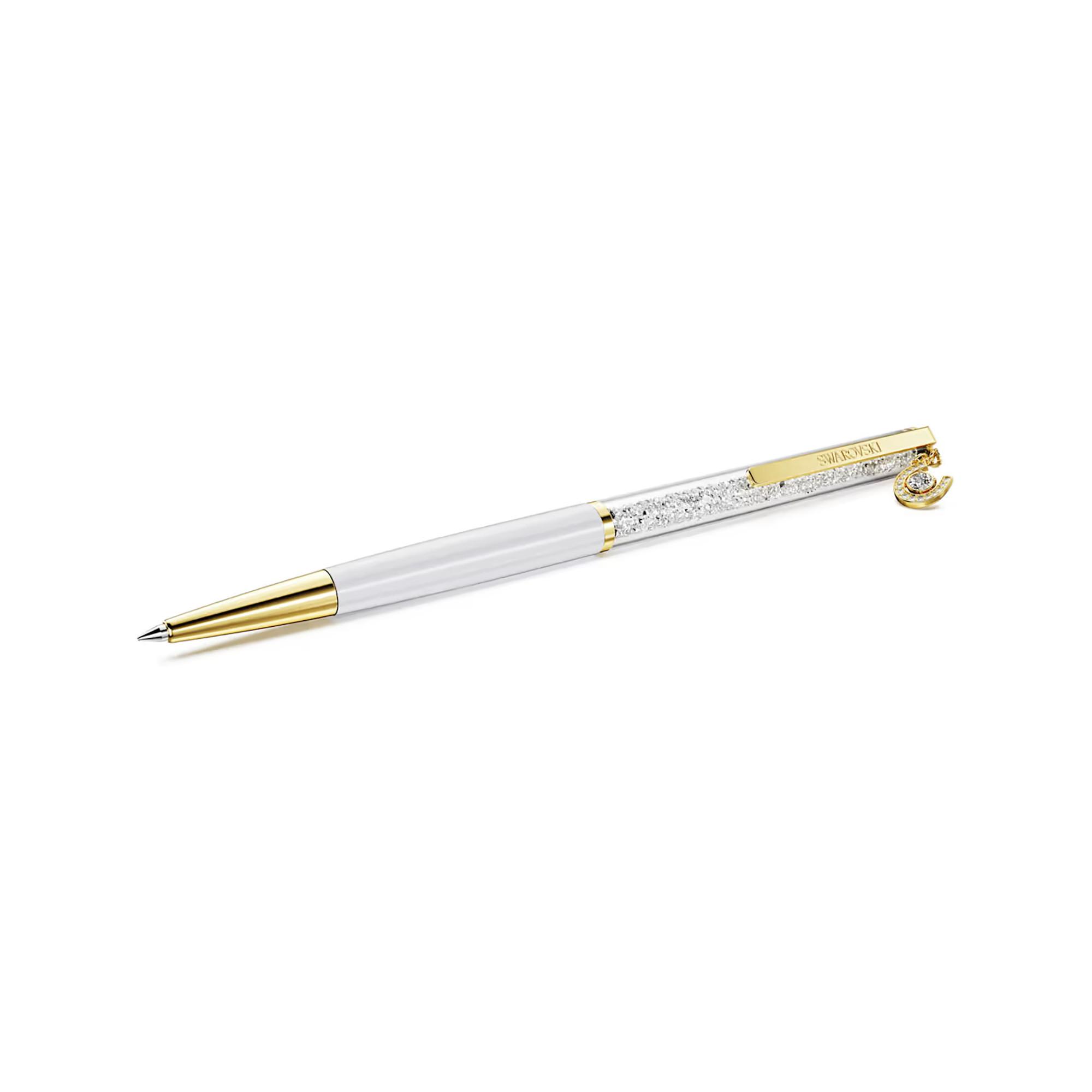 Le stylo bille fin de la collection Crystalline est rempli d’environ 400 cristaux visibles à travers la longue fenêtre transparente. Avec un corps laqué blanc, des finitions dorées et un charm fer à cheval, symbole de protection et de prospérité, ce stylo constitue un cadeau élégant pour de nombreuses occasions.