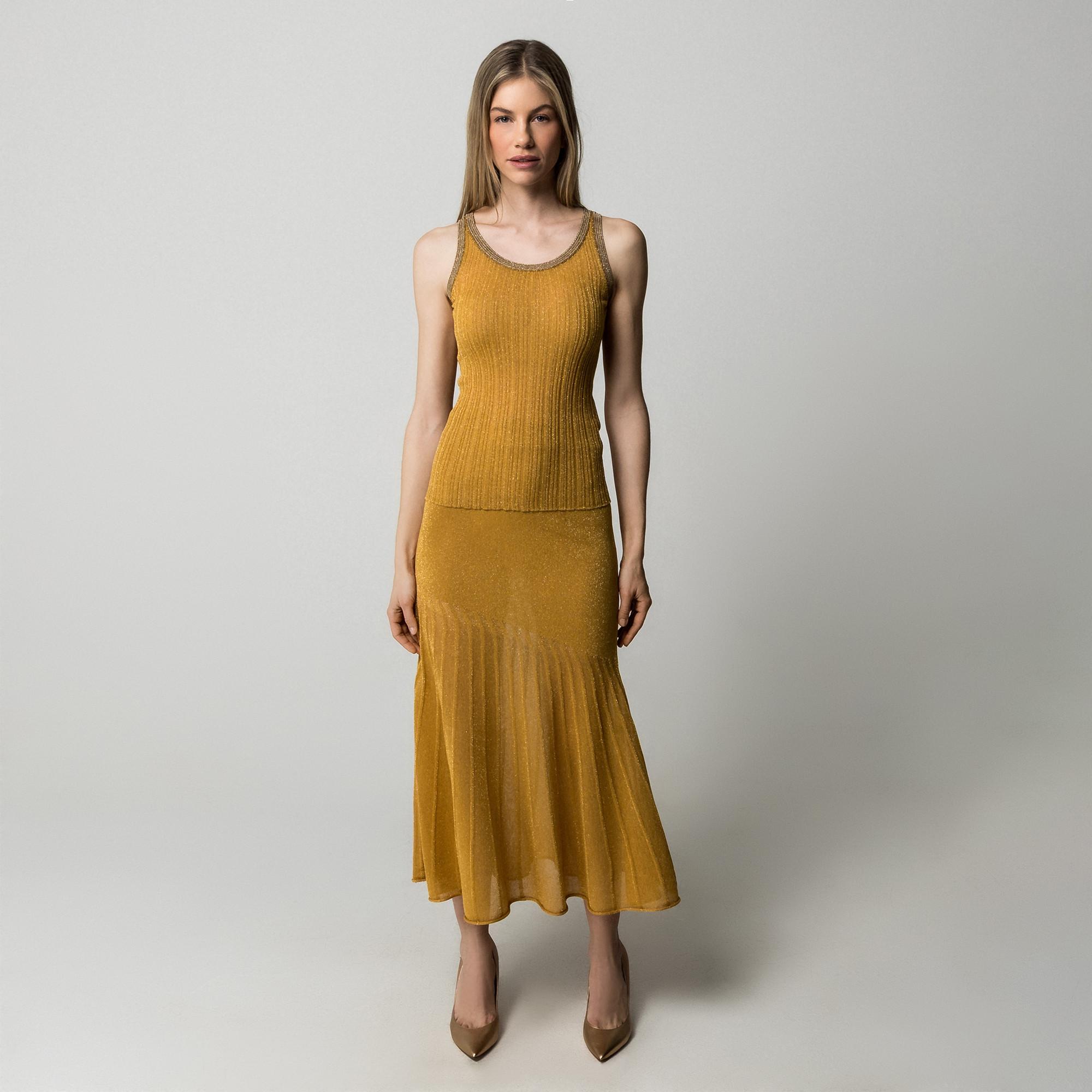 Cette jupe midi présente une finition chatoyante et un design plissé, offrant un look sophistiqué et élégant. La jupe est conçue pour tomber gracieusement, offrant une silhouette flatteuse.