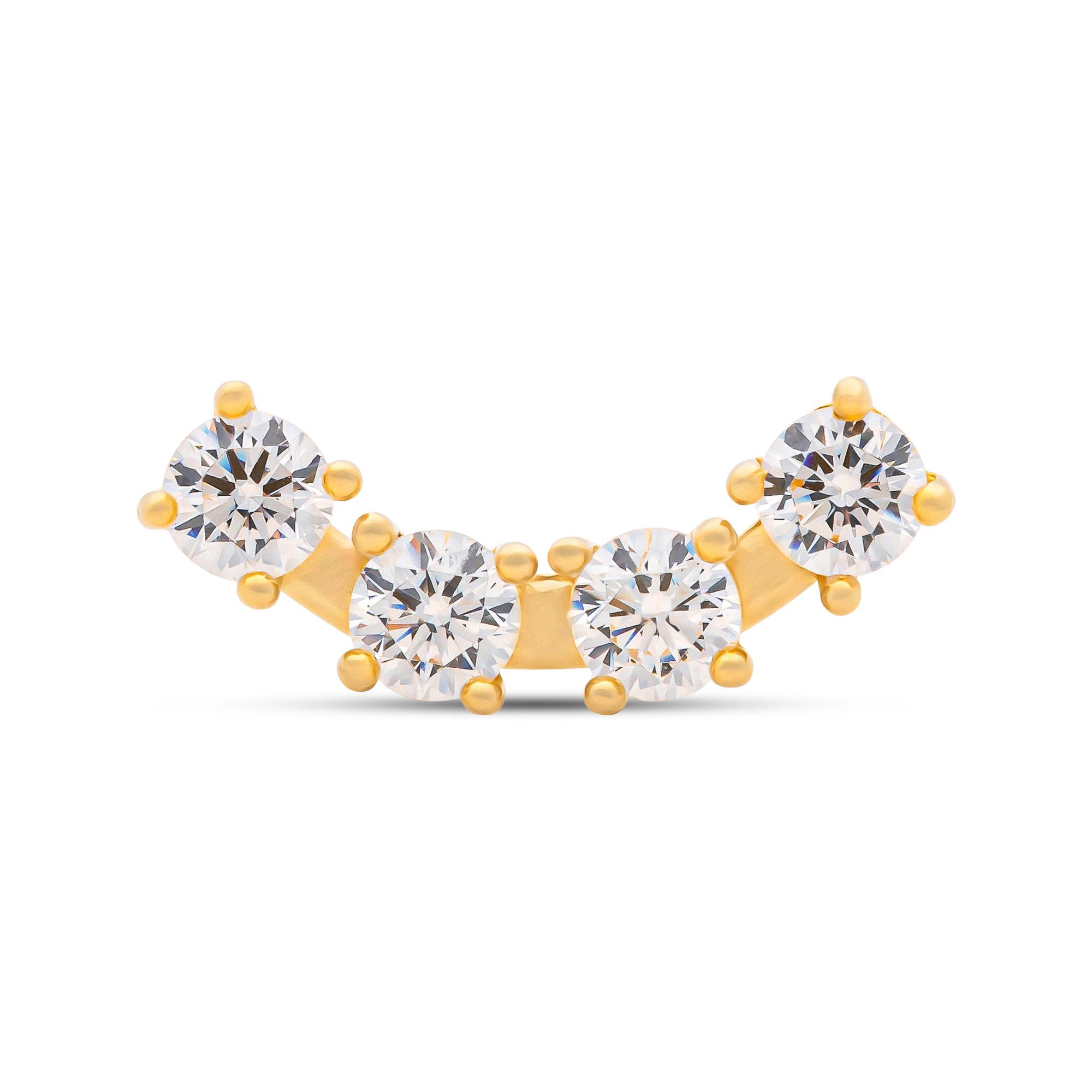 Ce piercing de L’Atelier Gold 18 Karat by Manor est un bijou élégant avec un design raffiné. Le bijou délicat est serti de pierres de zirconium à facettes. Les clous sont équipés d’une fermeture tournante.