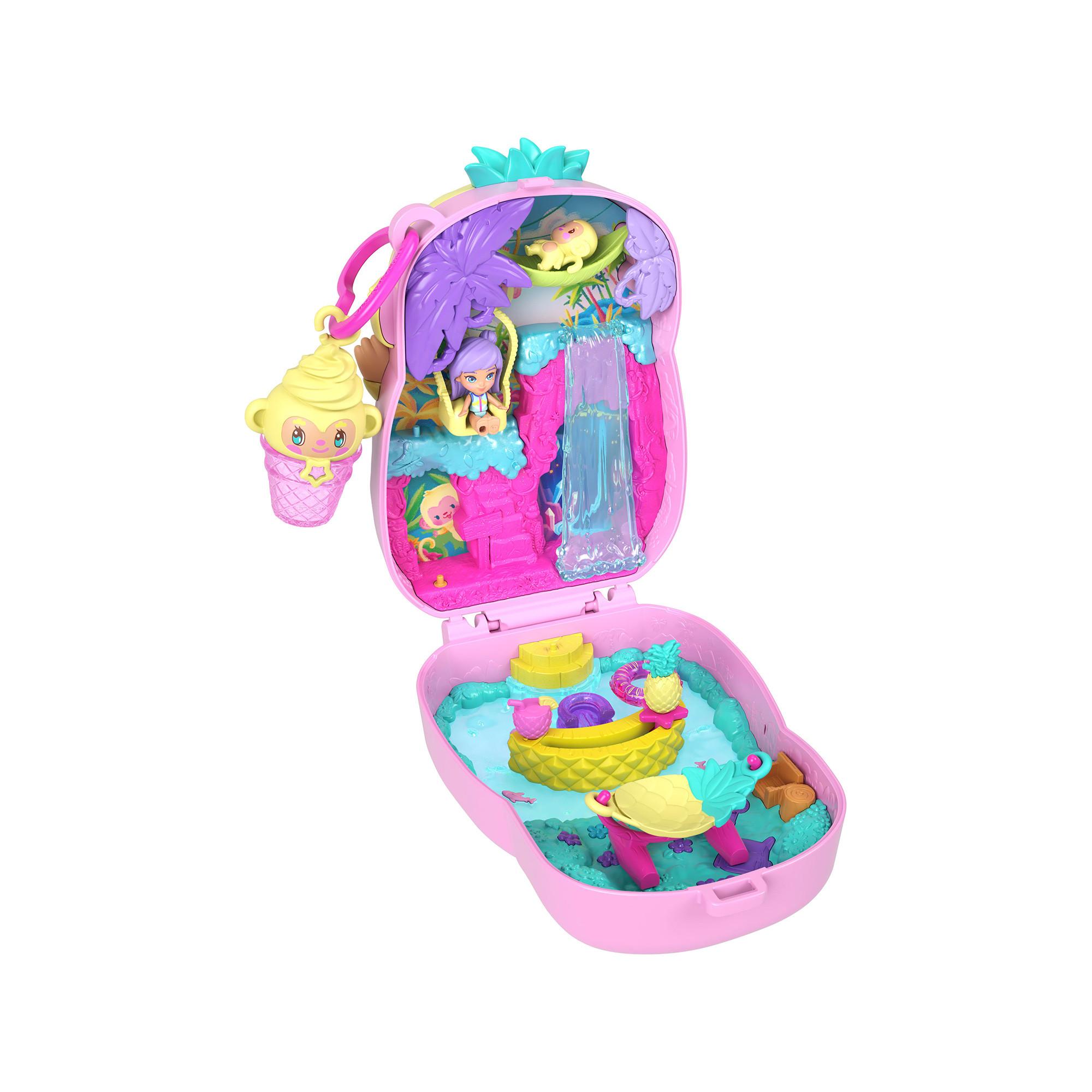 Cette charmante boîte Polly Pocket a des motifs d’ananas et de singe à l’extérieur et un amusant pousse-boisson. À l’intérieur, il y a une aventure tropicale à découvrir. Avec une micro-poupée et 7 accessoires assortis, y compris un singe de compagnie, les enfants peuvent bien s’amuser à se balancer. Dans la cascade