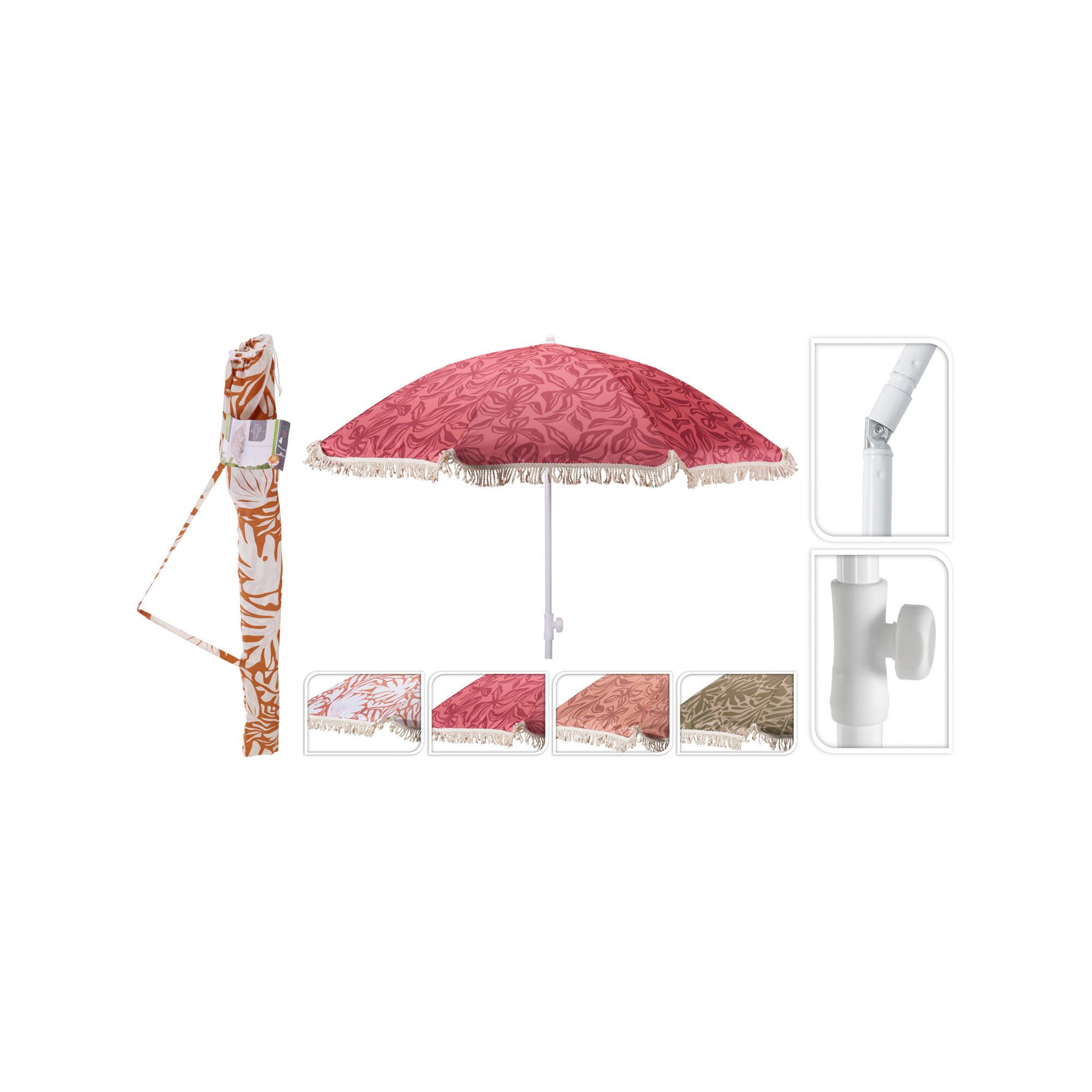 Parasol avec sac de transport Parasol avec glands Diamètre 180 cm Hauteur 200 cm 4 designs assortis différents Tige en acier, revêtement blanc Réglable Sac de transport avec bandoulière