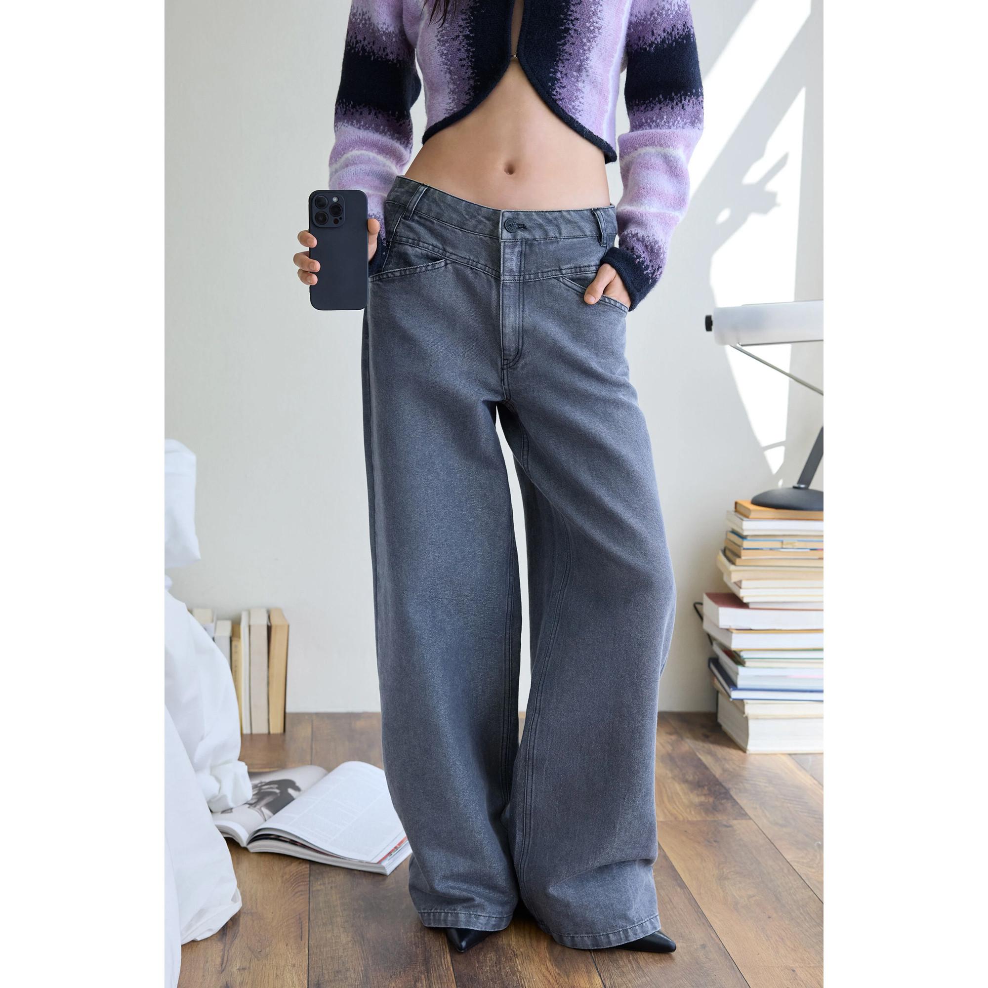 Ce jean coupe large offre une coupe décontractée et confortable, parfaite pour un look à la fois décontracté et élégant. Le design présente un style classique à cinq poches et une fermeture boutonnée et zippée.