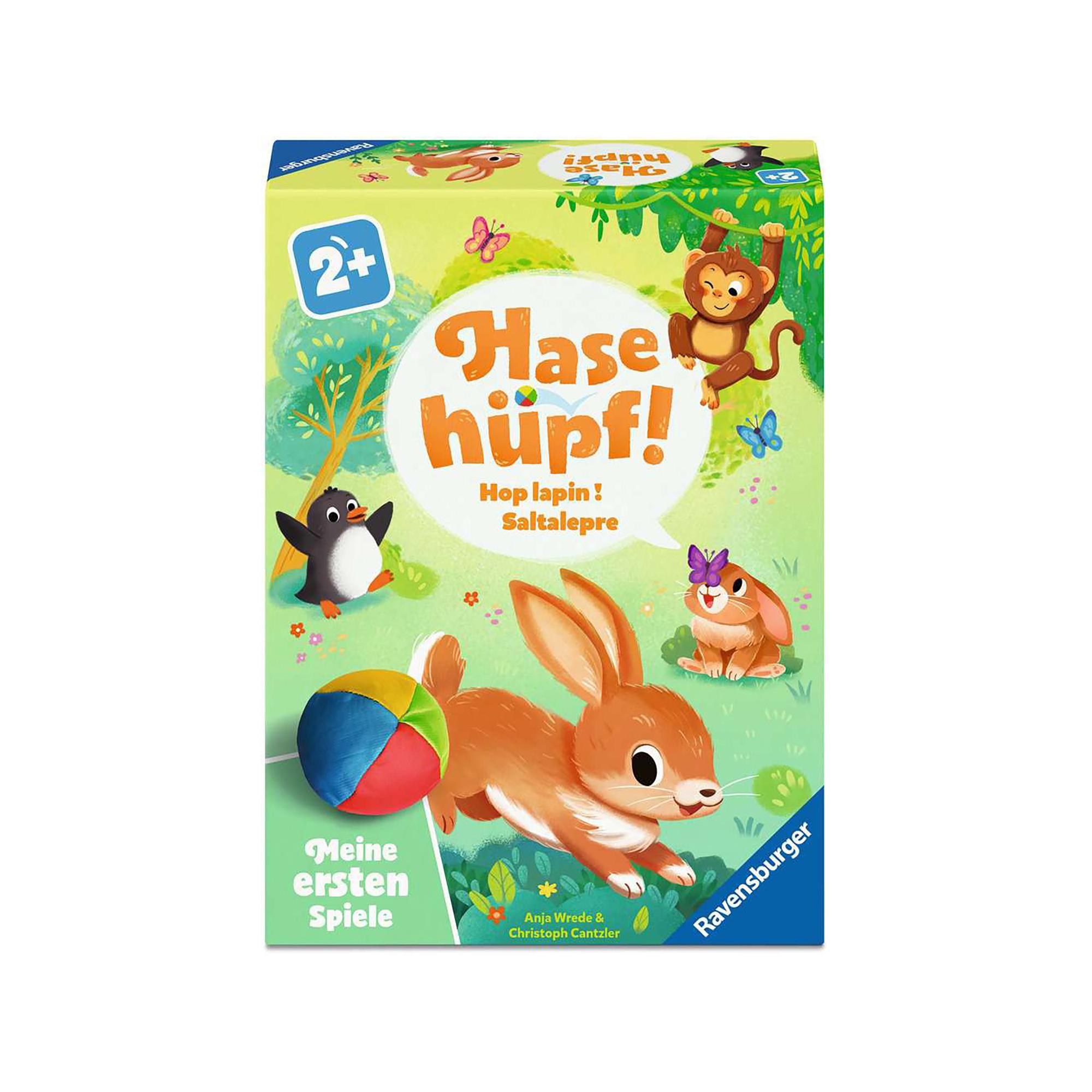 Dans le jeu enfant « Hase hüpf ! » (Hop, lapin !), les petits se posent des questions telles que : Où habite le lapin ? Quand l'avons-nous caressé pour la dernière fois ? Comment se déplace-t-il ? Dans le jeu libre, les enfants discutent de huit espèces animales différentes inspirées des cartes puzzle illustrées et les imitent avec des sons et des mouvements. Ils essaient ensuite de reconstituer le puzzle. Ils comprennent et assimilent. Grâce à la balle colorée et au dos des cartes, les kids apprennent à reconnaître et à distinguer les différentes couleurs.Avec ses mouvements ludiques, « Hase hüpf ! » favorise la motricité globale et fine. Dans le premier jeu, « Où est ma famille ? », le but est de ramener toutes les cartes d'animaux vers les plateaux d'animaux avec les familles correspondantes dispersées dans la pièce, en se déplaçant comme l'animal correspondant. La balle colorée détermine quelle carte peut être piochée dans la pioche. Tout le monde imite alors l'animal représenté et sautille, se dandine ou galope dans la pièce. C'est très amusant ! Deux idées de jeux supplémentaires offrent encore plus de variété et évoluent avec les capacités des enfants. Le jeu de puzzle est idéal pour l'apprentissage précoce et a sa place dans toutes les chambres d'enfants.